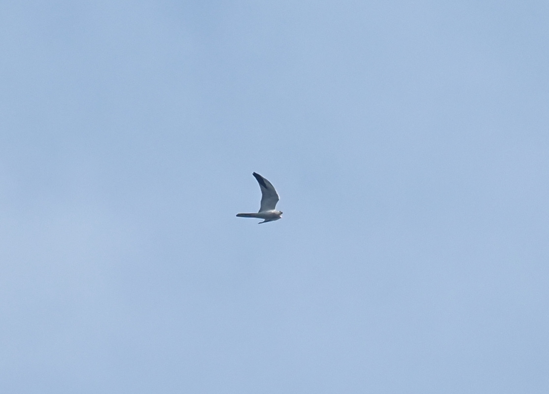 其实,这是一笔一周前的记录:10月7日下午3点40分,监测员在望远镜中看到两只鹞,叫来了众鸟友一起观察,可是由于太远,只有一位鸟友拍了一张芝麻点图,大多数人甚至没看到。监测员根据望远镜中基本的轮廓特征,虽然当时也存有疑虑,不过由于没有更清晰的影像记录,就暂时保守记录为相对常见的白尾鹞雄鸟。