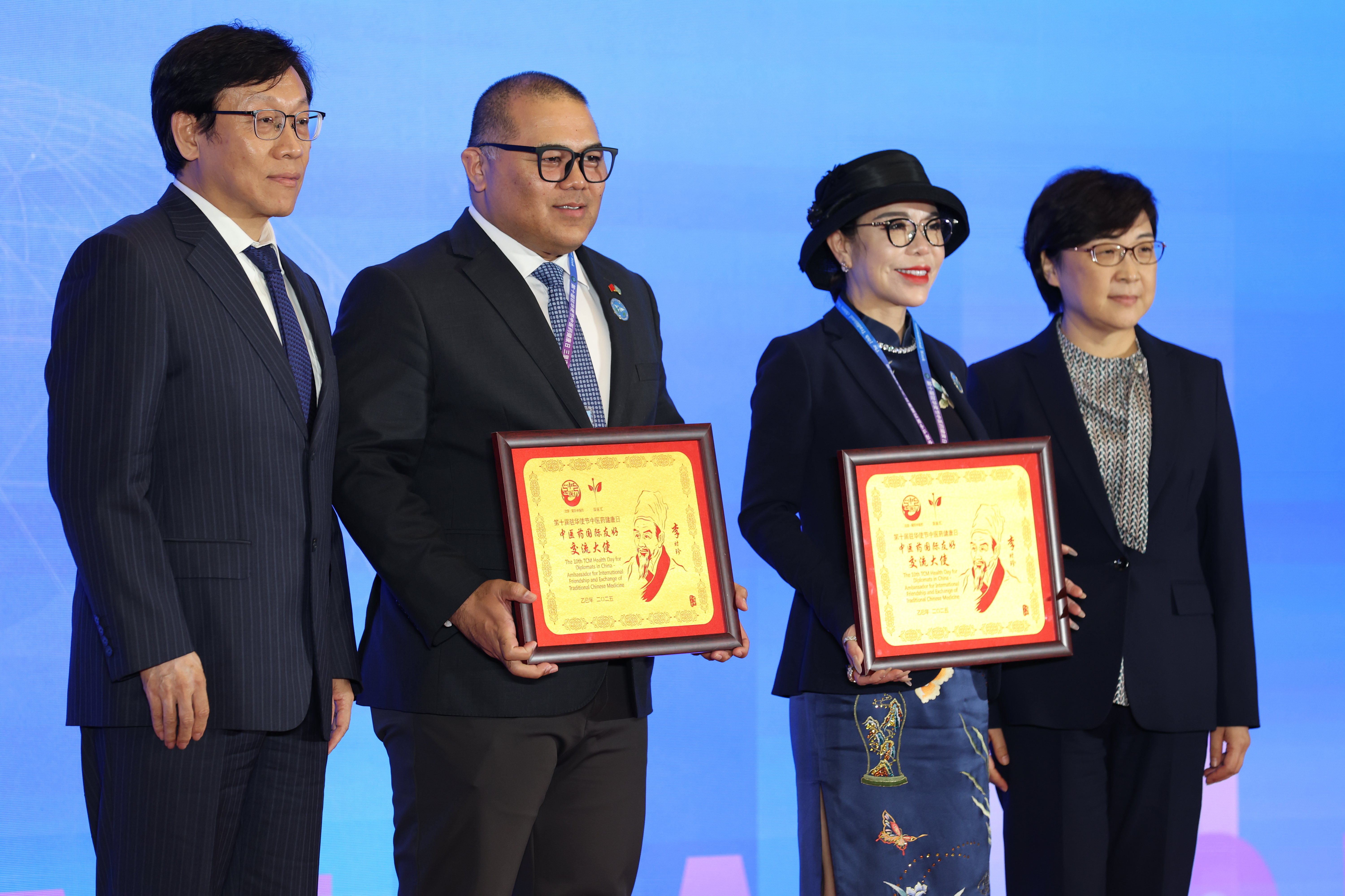 此外,厄瓜多尔驻华大使玛丽亚・索莱达・科尔多瓦・蒙特罗在现场被授予“第十届驻华使节中医药健康日荣誉主席”,乌干达、多米尼加等国大使获颁由非遗剪纸艺术家特别制作的“第十届驻华使节中医药健康日-中医药国际友好交流大使”证书,彰显中医药文化融合与外交认同。
