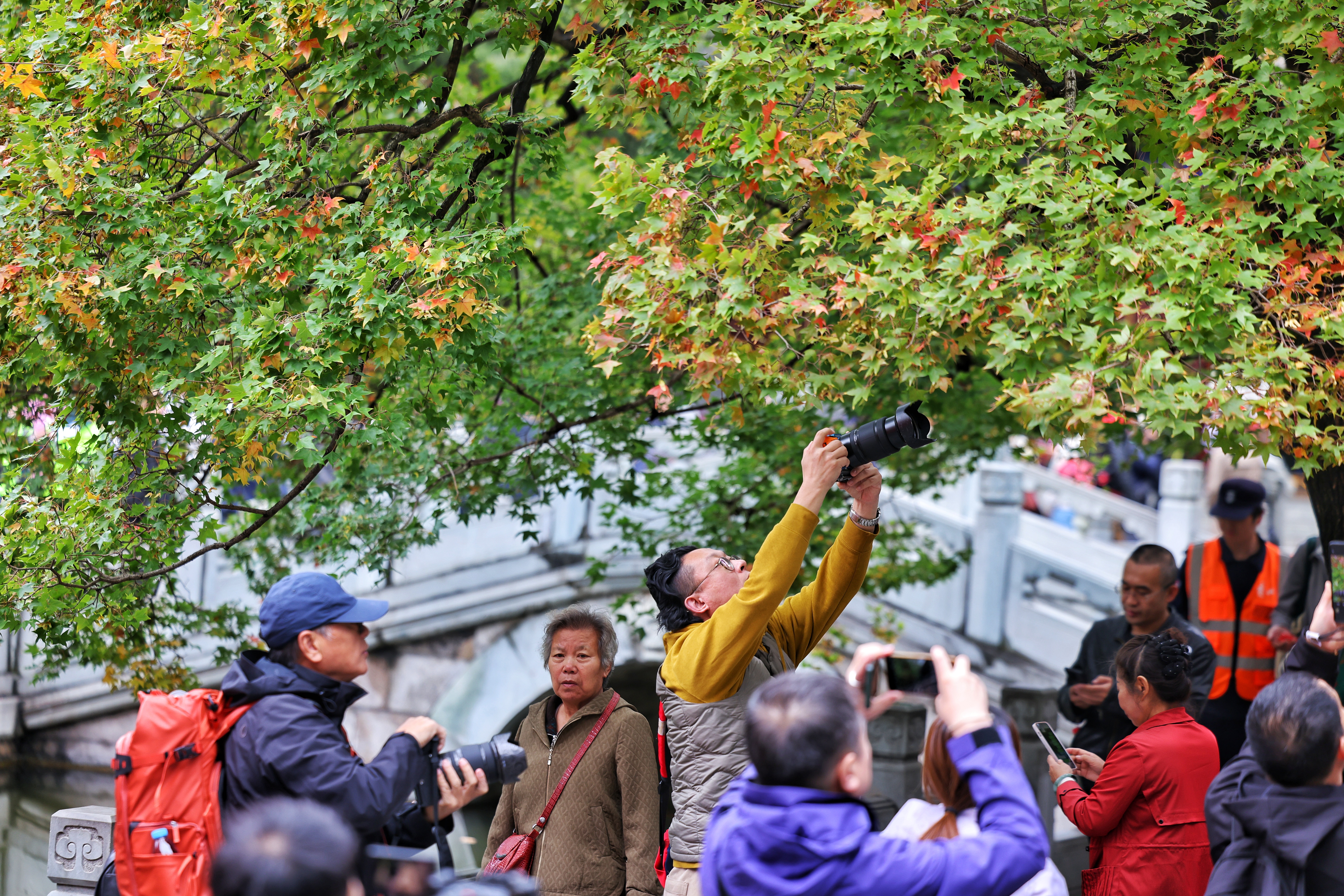 红叶观测小组最新数据:全园红叶平均变色指数已达10%,向阳处更红!等“霜降”一过,红叶会加速变色,十月下旬进入最佳观赏期——层林尽染,美得让人想住进画里。