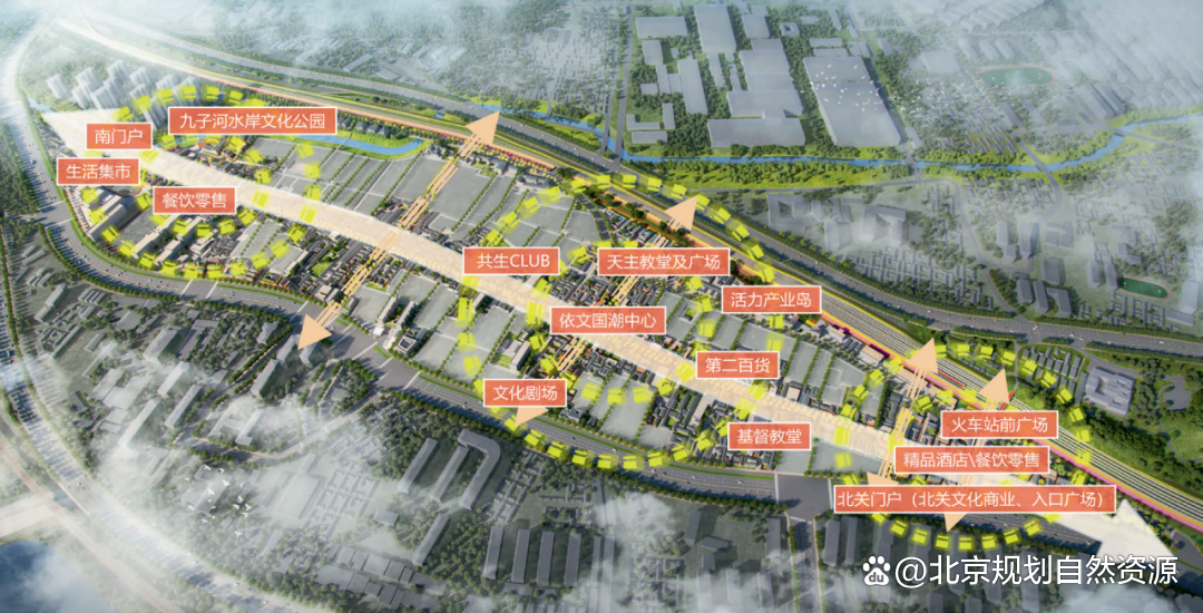 项目以城市更新为主导,采取“棚改+城市更新”模式,其中老镇全域沿用棚改政策完成搬迁腾退工作,划定上市地块范围,按照供地计划分期推进住宅范围的供地工作;剩余不属于上市地块的部分,依照控规风貌保护的原则,实施城市更新。城市更新部分坚持一张蓝图绘到底,以城市更新综合实施方案为抓手,将整体规划与一院一策相结合、历史风貌与空间修复相结合、业态布局与保障民生相结合,九大功能组团满足城市生活需求,持续完善依托老镇实际情况研究的“长辛店模式”,力求为全市同类型城市更新项目打造“样板区”。