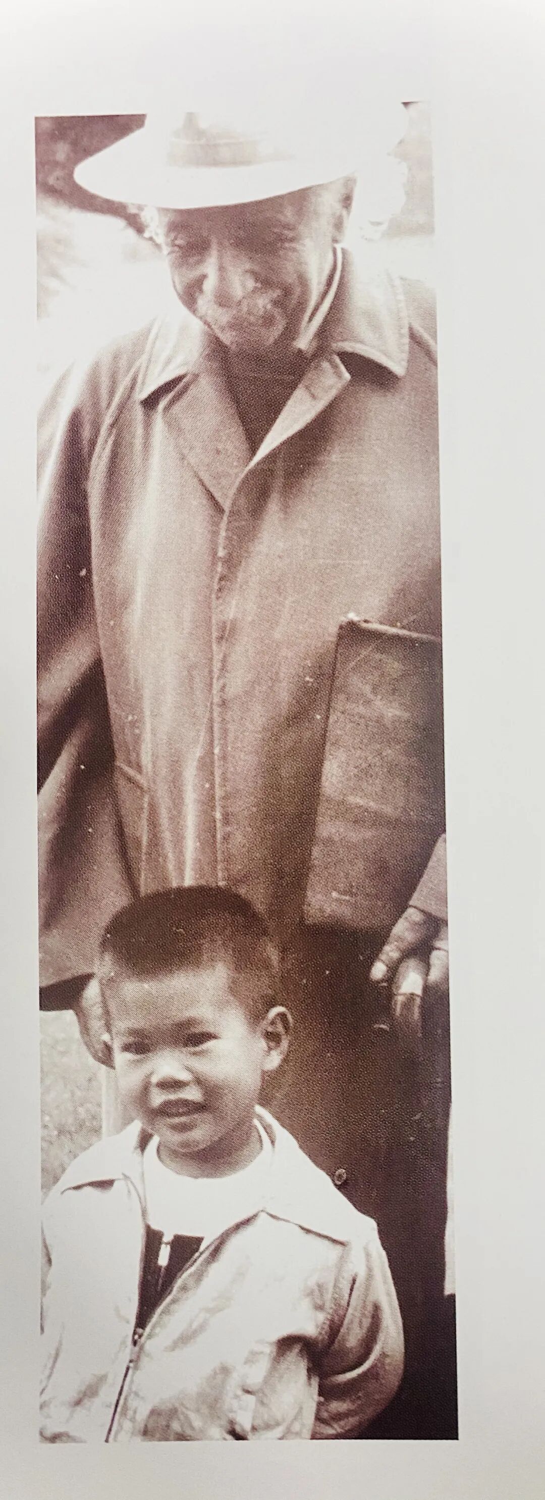 左:杨振宁的长子杨光诺与爱因斯坦,1954年摄于普林斯顿。杨振宁于1949年来到普林斯顿高等研究所工作,当时杨振宁曾十分惋惜自己没有于爱因斯坦合影。右:爱因斯坦在普林斯顿高等研究所时期