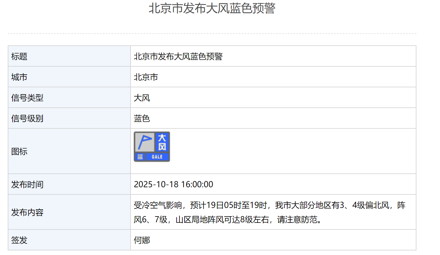北京市发布大风蓝色预警