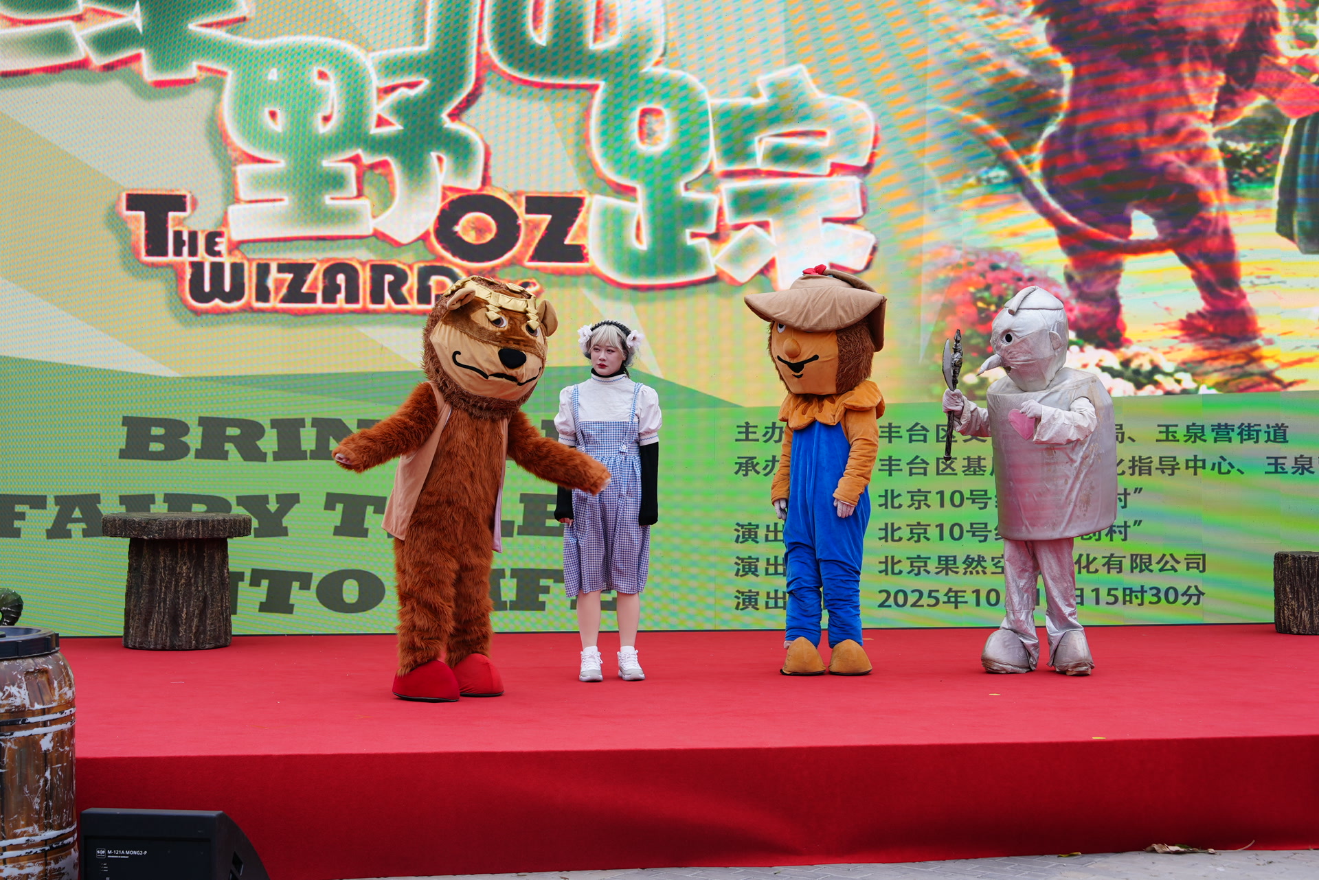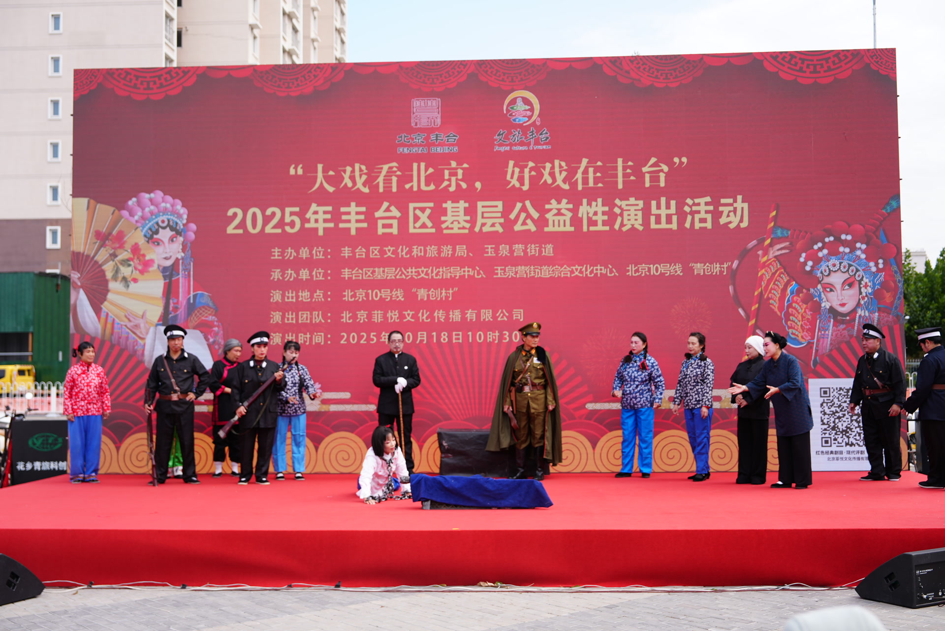 在文化舞台前,现代评剧《刘胡兰》正在上演,从“做军鞋支援前线”到“被出卖英勇就义”,一幕幕展现着刘胡兰的英勇事迹。儿童剧《绿野仙踪》台上表演趣味生动,还邀请小观众互动,欢声笑语在广场上回荡。