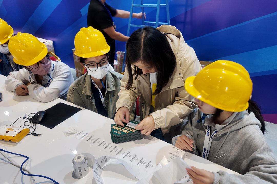 会场各处,来自北京工业大学耿丹学院与北京城市学院的340名志愿者各司其职。入口处,他们耐心核验证件;会场内,他们细致引导参会者,确保每份资料摆放整齐;咨询处,他们始终保持微笑,为参会者提供专业解答。