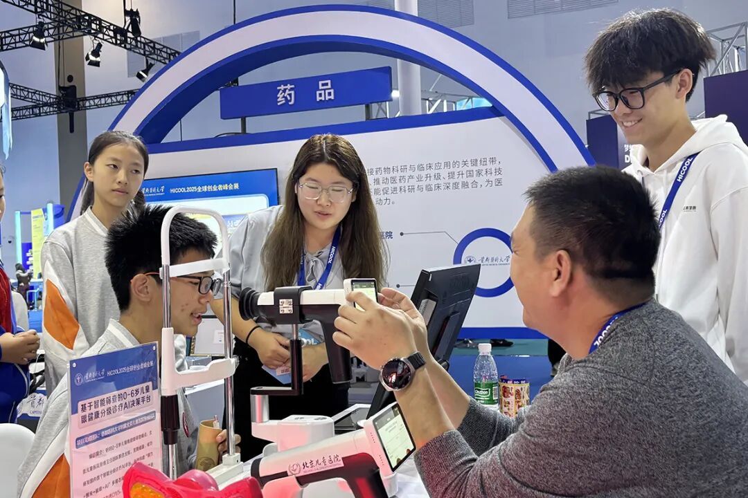 在HICOOL 2025大赛获奖项目展区,学生们聆听青年创业者经验分享、认真记录,感受一个个创业项目由创新想法到破土而出、落地生根的历程。仁和中学初二(15)班学生贺子千向记者谈起了参观感受:“在这里,我看到了许多充满创意的项目,其中有不少创业者还是大学生,这非常值得我们学习,希望长大以后我也能成为像他们一样的人。”