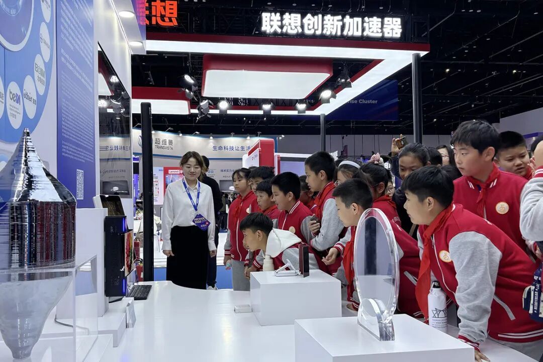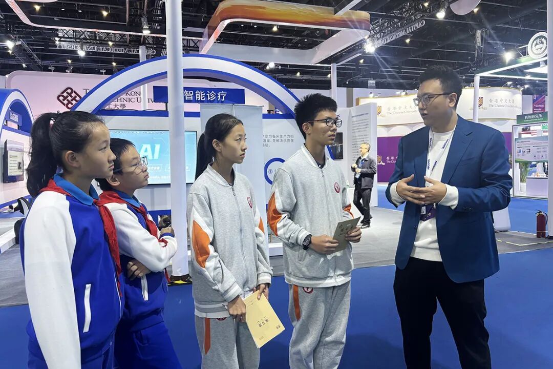 活动现场,中小学生首先走进世界一流高校展区,在清华大学、北京协和医学院、香港理工大学展区驻足了解。仁和中学初二(15)班学生丁曦冉说:“刚刚参观了北京协和医学院展区,我发现现在可以借助AI为不同年龄段的患者提供更精准、更科学的治疗。我以后想成为一名医生,现在我要好好学习化学、生物学等方面的知识,为以后打下坚实基础。”
