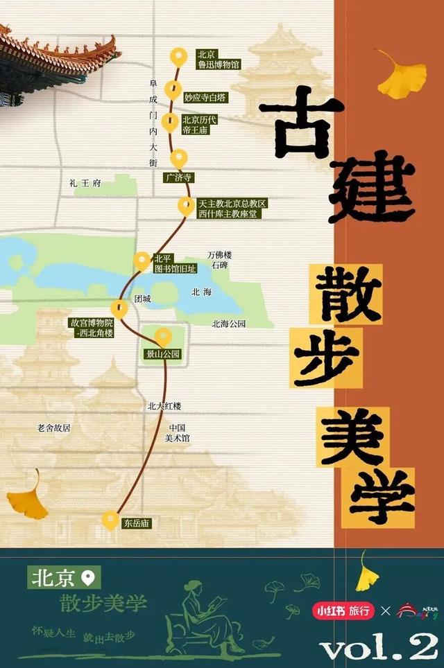 去鲁迅博物馆感受秋风里的书卷气,去妙应寺白塔捕捉红墙、黄杏与白塔的同框,去“小故宫”感受低调的皇家秋色,去广济寺听经文闻桂香,去西什库主教堂看彩色花窗下的斑斓光彩,去北平图书馆旧址看斑驳光影洒落,去故宫西北角楼看金叶衬红墙绿瓦,去景山公园沉浸式感受“北平的秋”,去东岳庙感受古朴静谧与京味秋意。