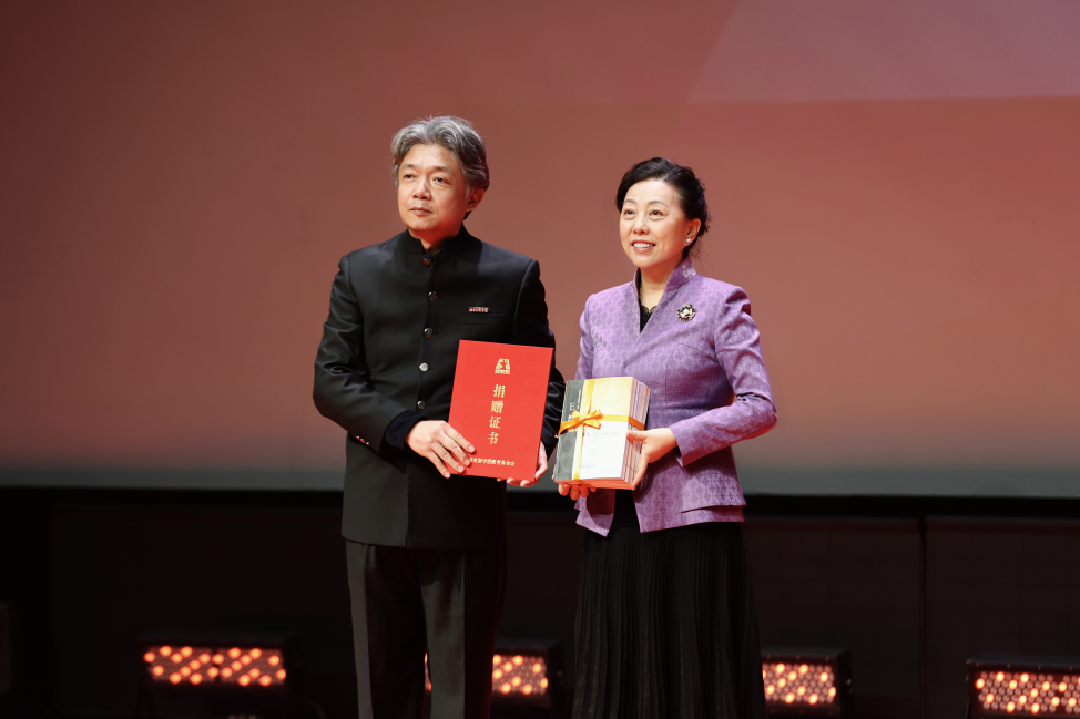 校友及社会各界捐赠仪式上,离退休老教授林洪桐心系母校,虽远在大洋彼岸,仍委托扈强将凝聚毕生心血撰写的近30本著作捐赠给学校。周志军代表学校接受捐赠,并向林洪桐颁发了捐赠证书。
