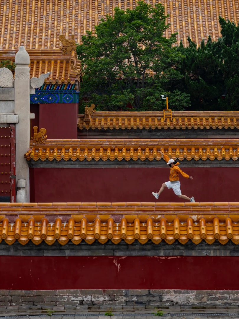 近日,地坛公园拍摄的“跳墙”照在社交平台上火了。画面中的人物在两面红墙之间凌空跃起,乍一看,仿佛“跳”到了墙上,好似武侠片中的飞檐走壁,动感十足。