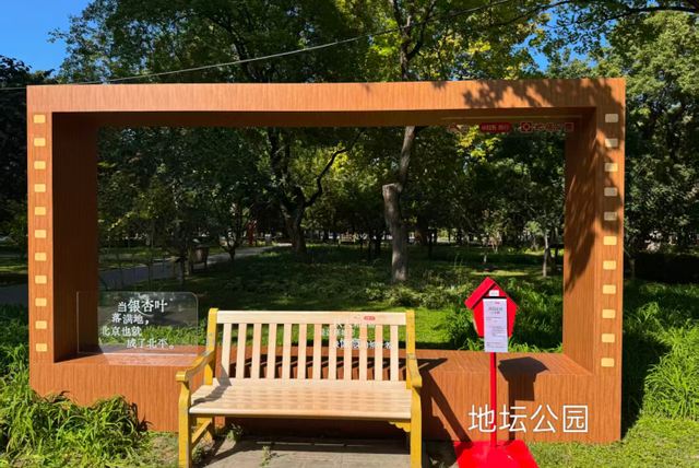 在地坛公园的银杏大道,银杏叶与电影画框相映成趣,古都文化与现代休闲和谐交融,“框”住美景,“框”住美好瞬间。