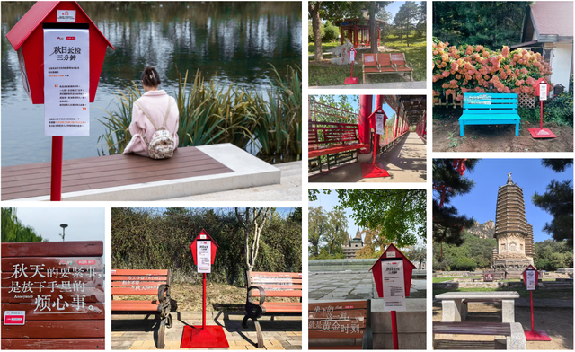 除重点“电影画框”场景外,本次活动还在全市范围内布置了60个秋日主题邮筒装置及200余个特色长椅装置,覆盖天坛公园、八大处公园、潭柘寺、妙峰山、慕田峪长城等多个点位。游客可以在长椅驻足休憩,与长椅、邮筒合影,也可以通过邮筒装置的“碰一碰”功能带话题 在小红书和参与互动,解锁周边文商旅体打卡资源,感受北京秋日“慢生活”中的文艺气息与消费活力。