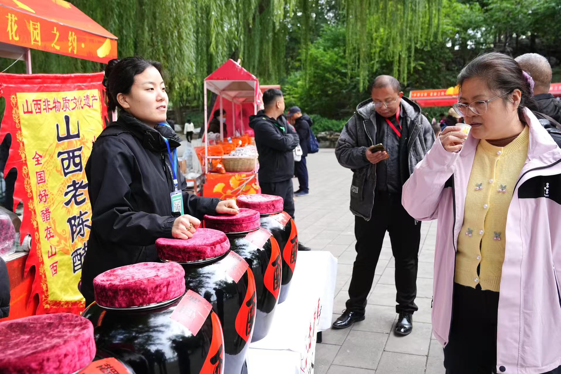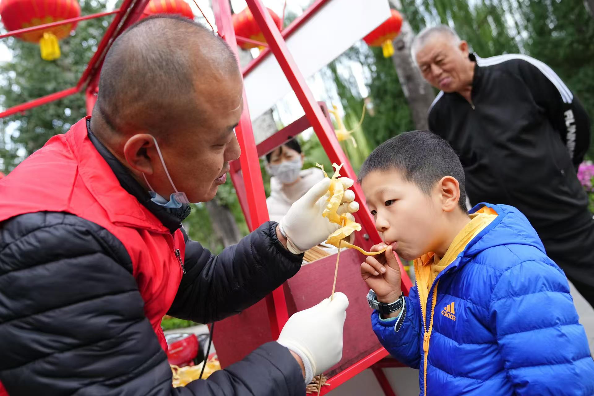 非遗市集也在公园中堤北口及周边区域同期亮相,公园联合丰台区非物质文化遗产展示体验中心,为游客带来燕京八绝雕漆、京绣等传统技艺,游客不仅可近距离欣赏,还可亲手体验草编、中草药香囊等手工艺制作。市集还推出了老陈醋文创、秦绣、盘扣、宋锦服饰等创新产品,实现技艺展示、互动体验与文化消费的深度融合。