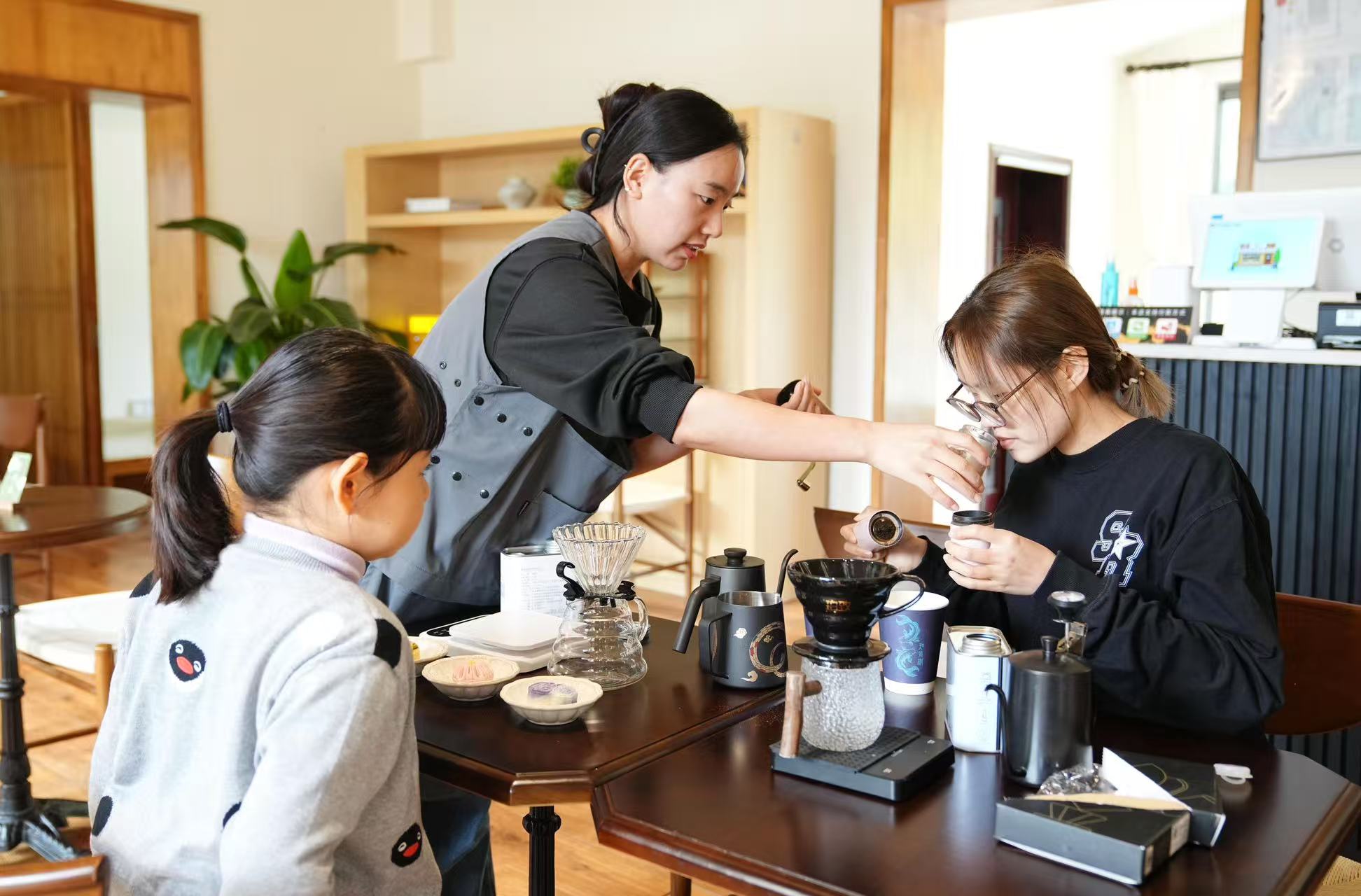 活动期间,游客可在小樱商店、知鱼榭等商业网点任选一处,通过消费限定产品领取限量集章卡券,集齐三枚限定秋季印章后,即可在小樱商店兑换公园特色文创徽章,活动期间限500张卡券,赠完即止。公园还在知鱼榭举办了咖啡品鉴沙龙,参与者可在品鉴美味的同时学习手冲咖啡技巧。