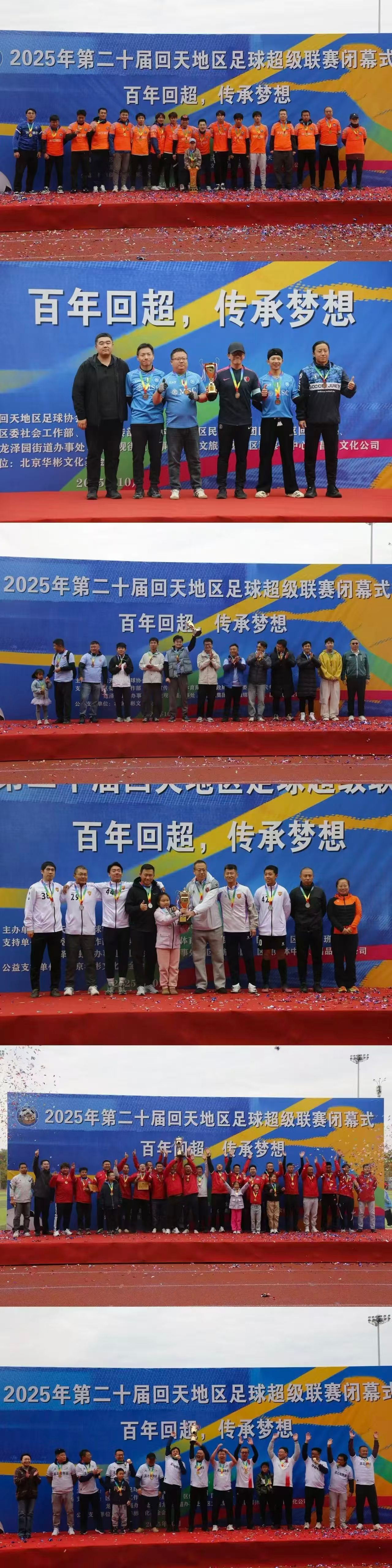 10月18日下午,2025年第二十届回天地区足球超级联赛在昌平区回龙观体育文化中心南区足球场落下帷幕。