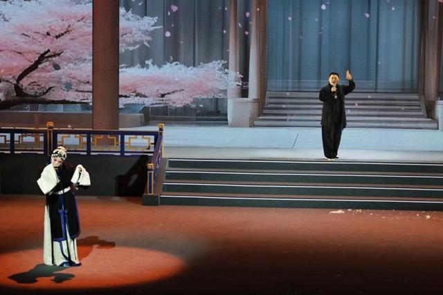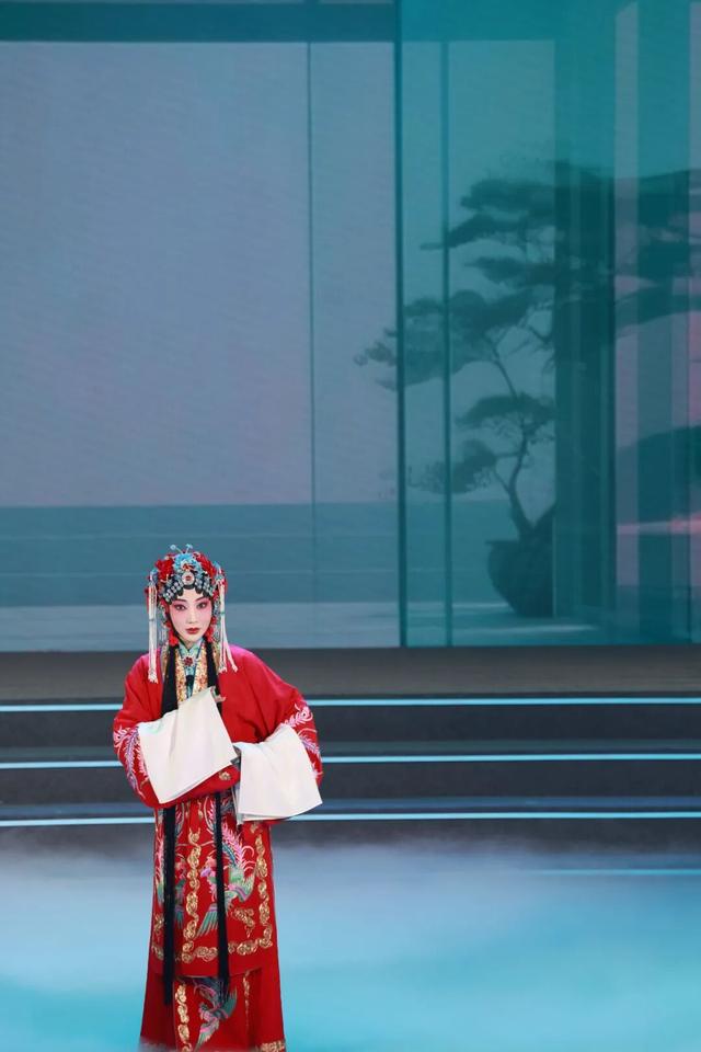 开场节目创新采用“名段联缀”的呈现方式,由国家京剧院四位优秀青衣演员姜美伊、刘琪、吕耀瑶、付佳,分别演绎《太真外传》《霸王别姬》《锁麟囊》《贵妃醉酒》中的经典片段,尽显青衣行当之大美,瞬间将观众带入绚丽多姿的梨园世界。