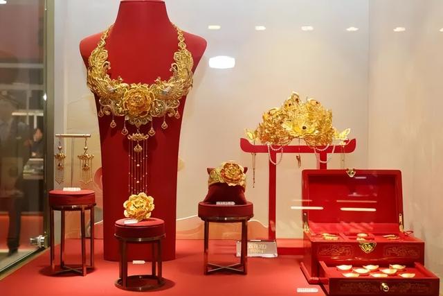 本届展会,菜百股份针对不同场景与审美需求,打造多元东方美学矩阵:基于婚庆需求,既有古韵厚重、精致大气,适配婚礼仪式感的古法工艺大套装,也有款式轻巧、日常好搭,满足通勤佩戴需求的硬金工艺小套装。基于悦己需求,更全新推出兼具时尚设计与实用属性的系列新品:炫彩系列金色麦穗套装、东方花园——黄金时代系列产品。