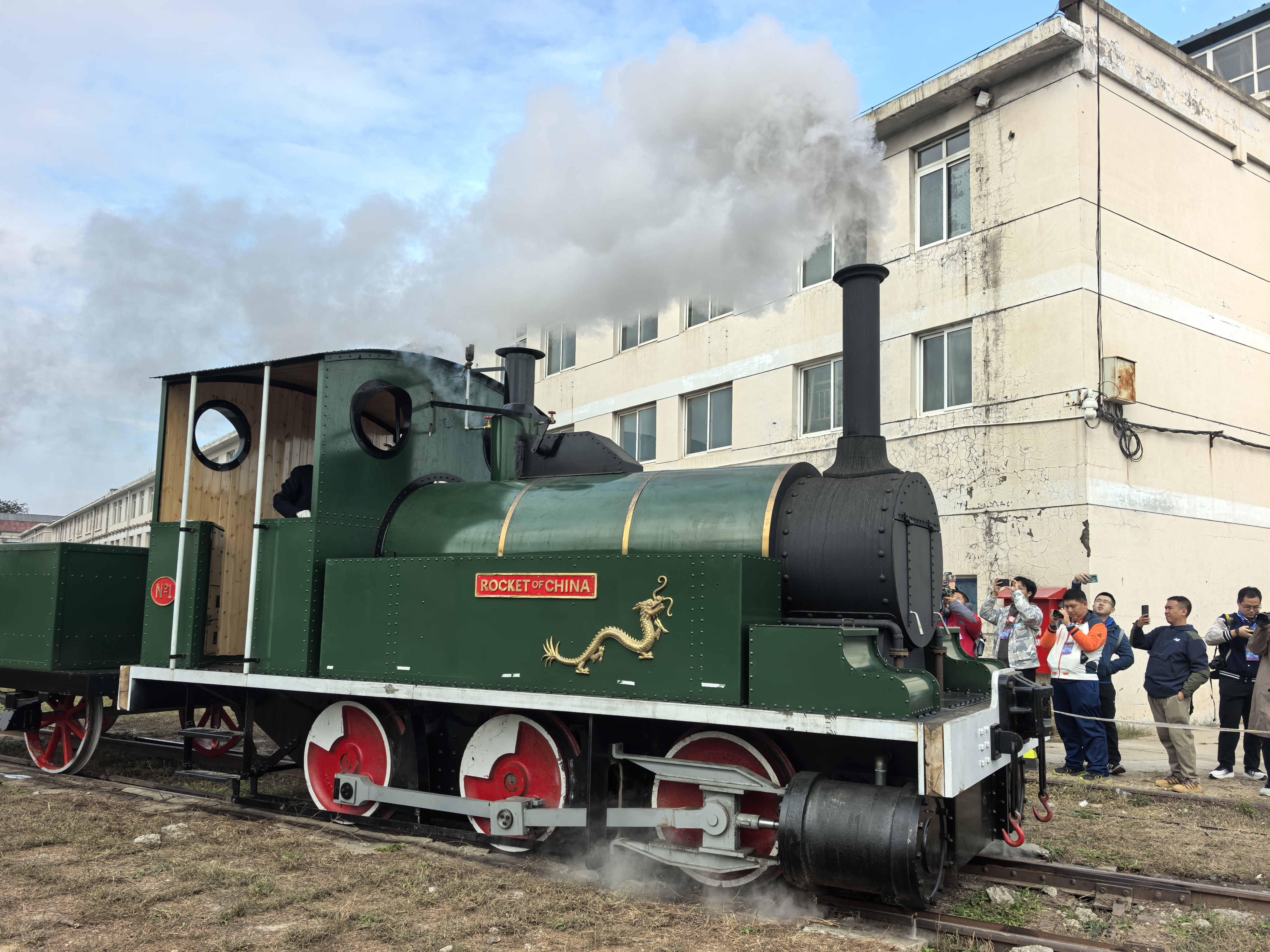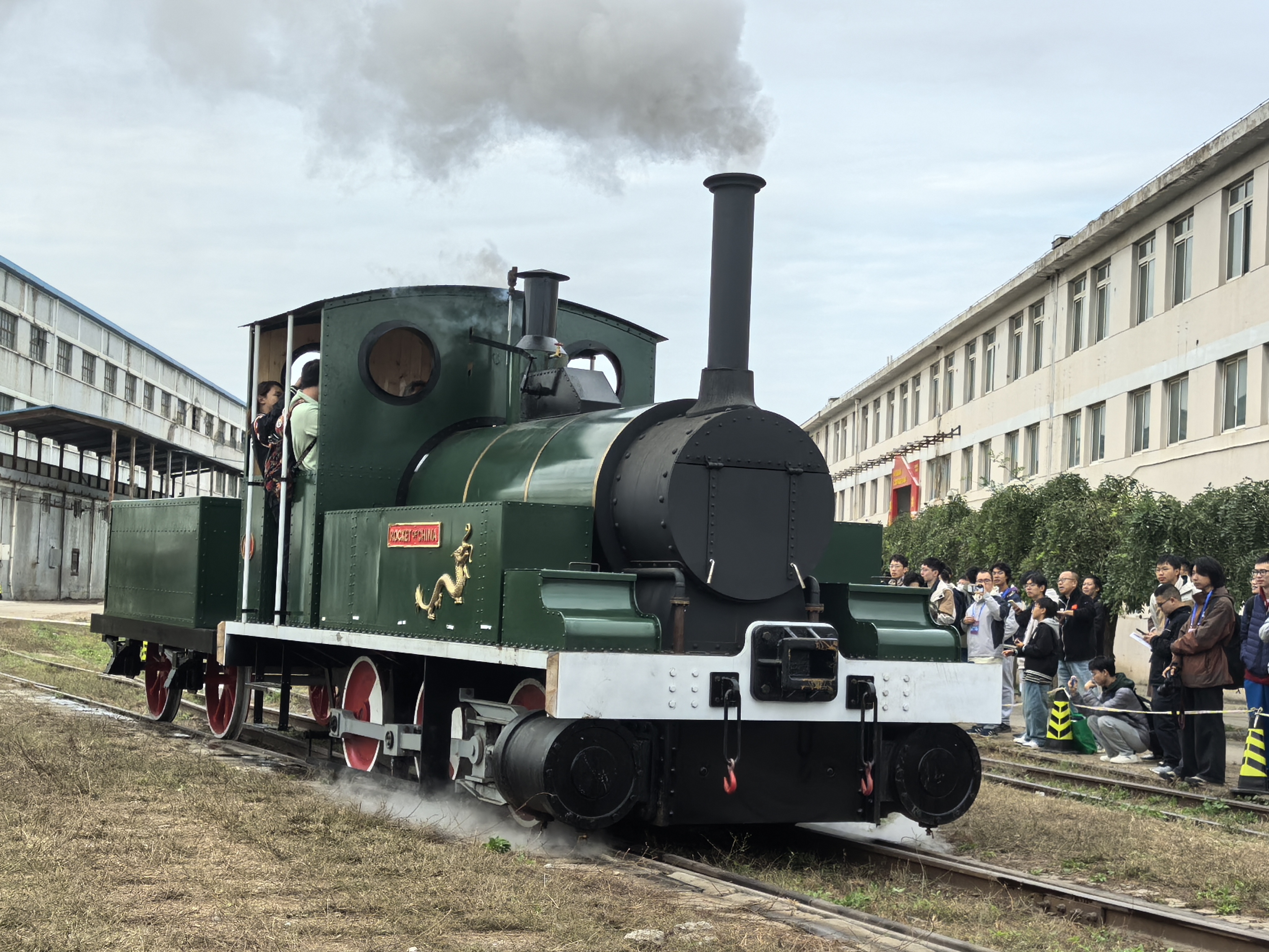 随着操控杆推动,“隆隆”的轰鸣声渐起,滚滚浓烟喷吐着白色烟柱,车轮缓缓转动,铁轨被碾压出沉闷的“哐当”声,“龙号机车”开动分享环节率先点燃了活动氛围。曾驰骋于唐胥铁路的“龙号机车”(等比例复原品)进驻活动现场,记者了解到,这是国内唯一一台可实际开动的“龙号机车”,作为铁路工业史上的经典符号,“龙号机车”的“复活”运转让学子们近距离感受铁路文化魅力。