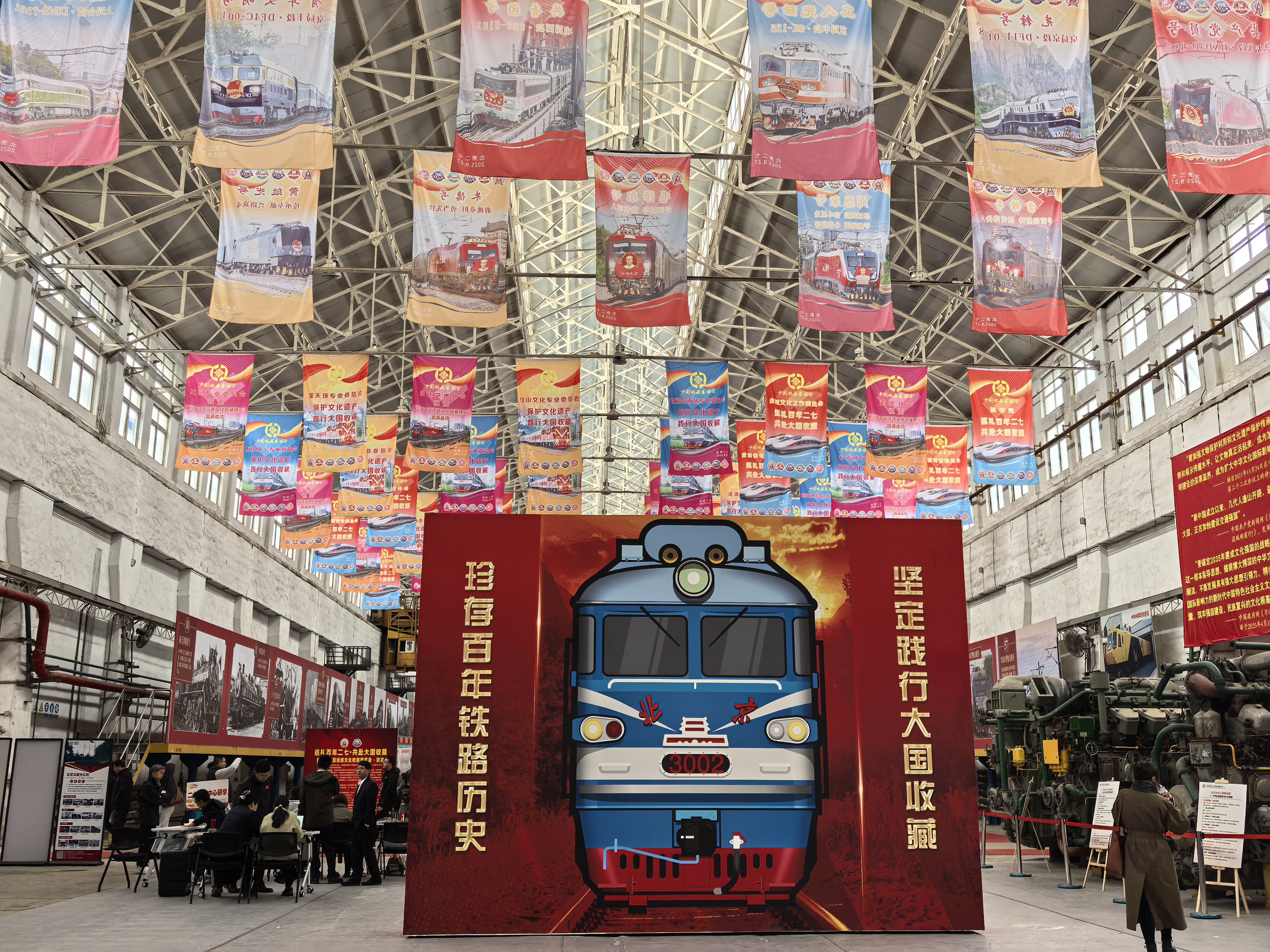 5万件收藏展品、2025幅摄影作品、400框集邮展、展线总长达918米……第三届中国铁路文化收藏博览会暨第三届中国铁路集邮展、第三届中国铁路摄影展在二七厂“机车总装车间”内开展,全国25个省市自治区的1000余位铁路收藏家、摄影师、集邮家集体“炫宝”,16万件(套)精品实物与图片统一亮相。