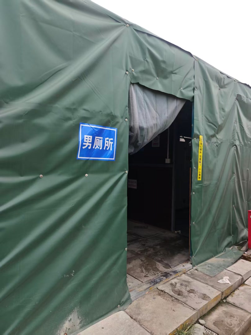 然而,大集公厕的卫生状况仍常被顾客吐槽。记者近日多次来到宏门大集小吃街旁的公厕探访。该公厕是由棚架搭建起来的,进出必须掀开一块绿色篷布,篷布上面全是污垢,看得出来很久没有清洗了。