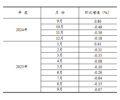 根据季节调整模型自动修正结果,对2024年9月份以来的固定资产投资(不含农户)环比增速进行修订。修订结果及2025年9月份环比数据如下: