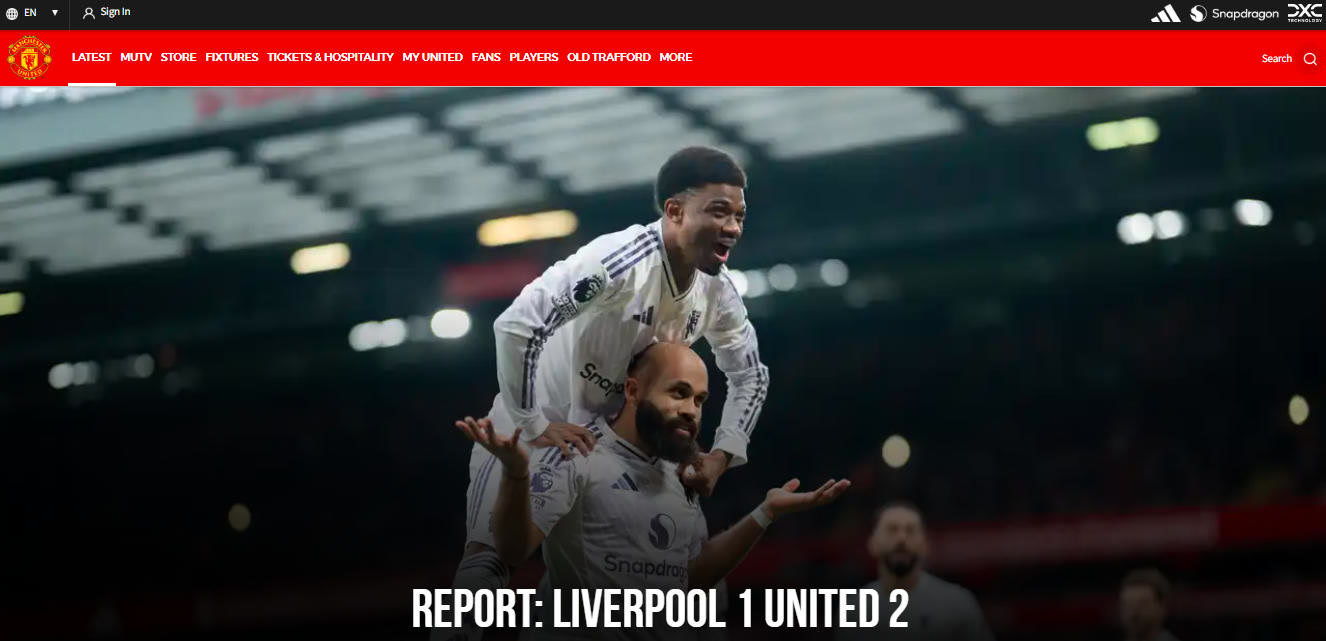 然而,利物浦队开场1分钟就遭遇打击,姆伯莫接迪亚洛直传一脚小角度劲射破门,曼联迎来梦幻开局。