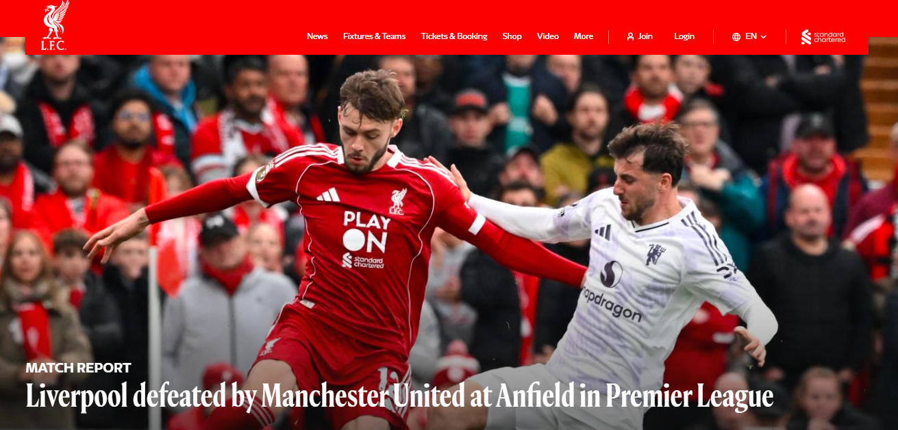 相比赛季初场场“绝杀”的好运气,利物浦队最近似乎走了背字。本场比赛,荷兰前锋加克波一人就三次射中门框。尽管他在第78分钟的进球一度让安菲尔德球场的球迷看到主队全身而退的希望,但5分钟后,布鲁诺·费尔南德斯传中助攻马奎尔头球打入制胜球,曼联队2比1全取三分。