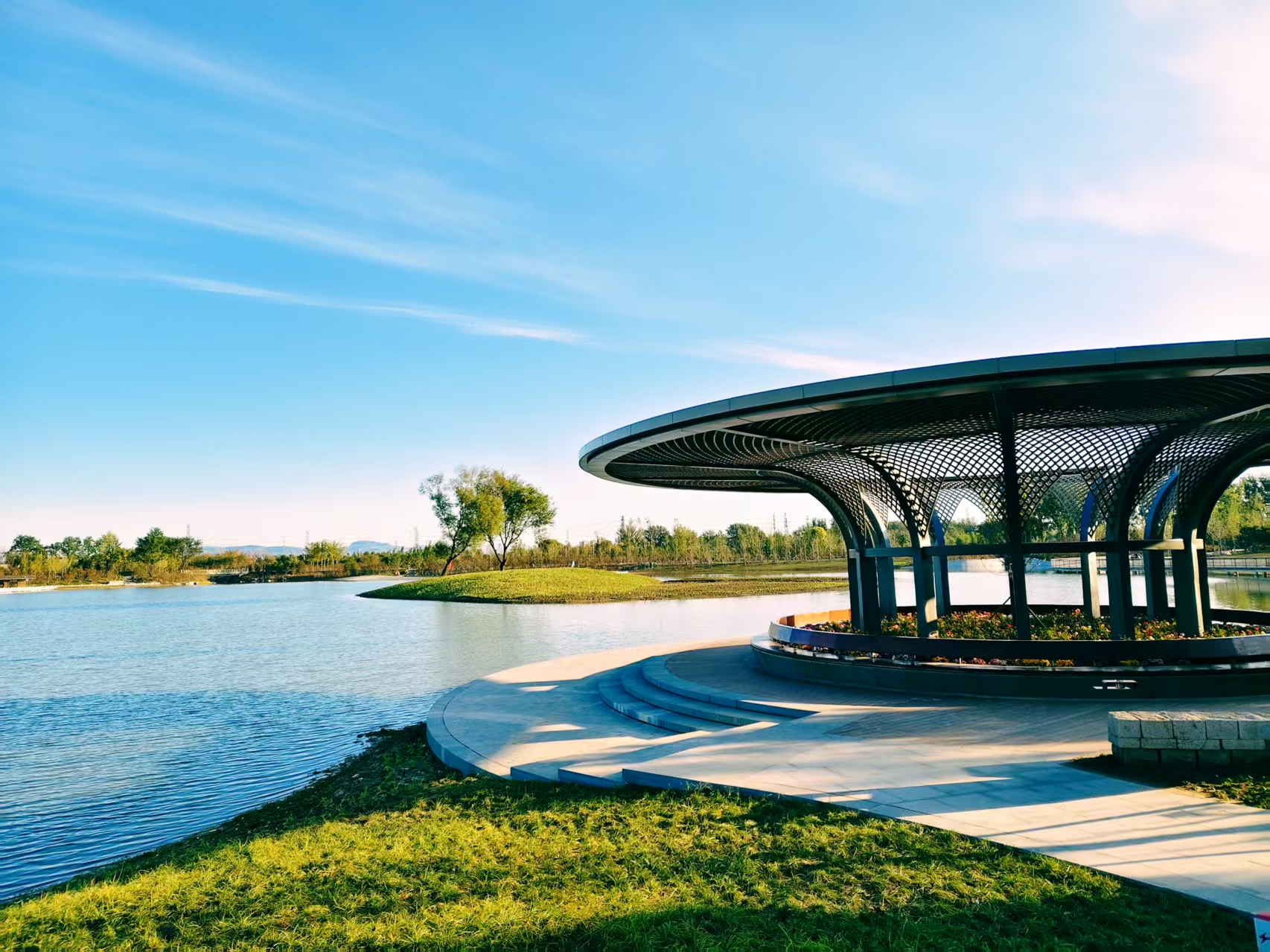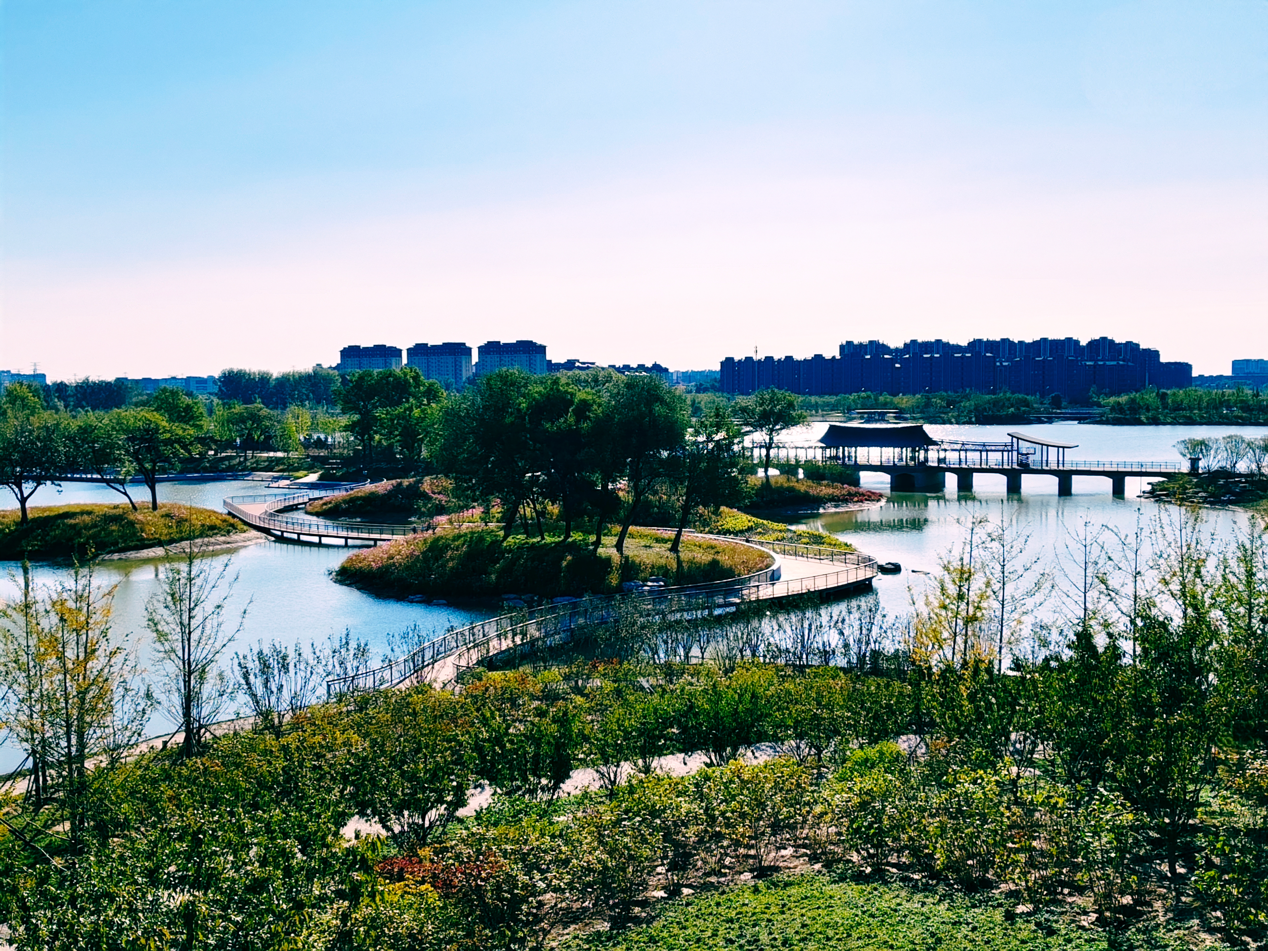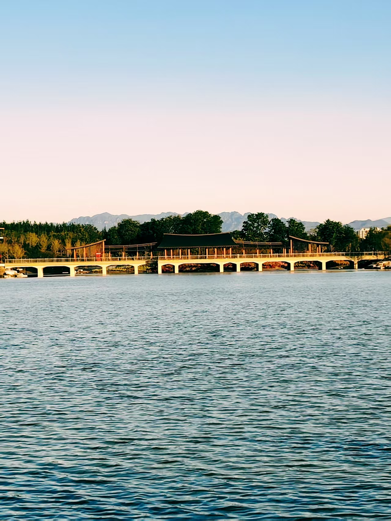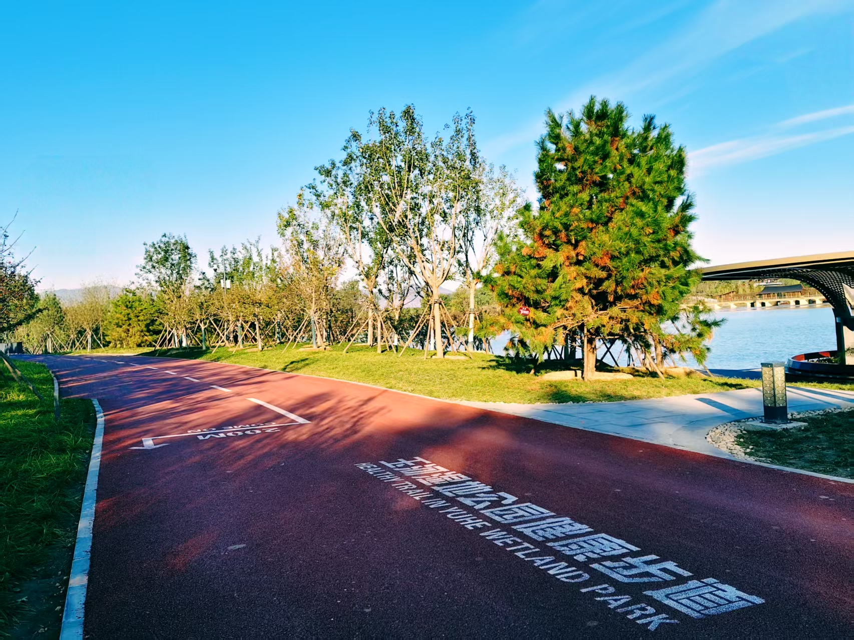 玉河湿地公园落子海淀北部,邻故宫新区,是新晋宝藏地。园内湖泊开阔,可远眺凤凰岭与故宫飞檐;湖心岛波斯菊正艳,新栽银杏、油松添绿意,路边菊丛绽放。跑步道蜿蜒,人少景幽,山环水绕,框景西山尤妙。