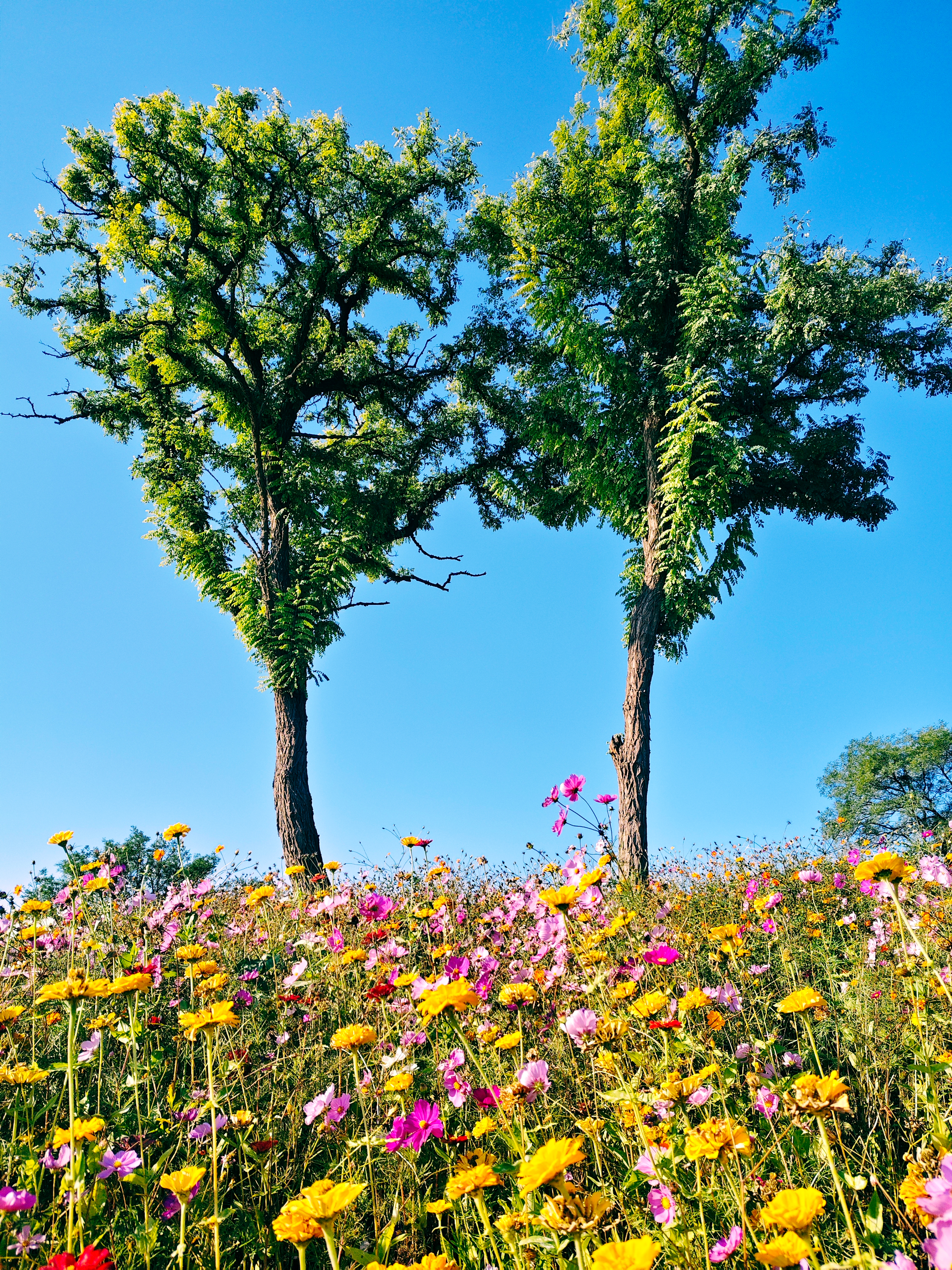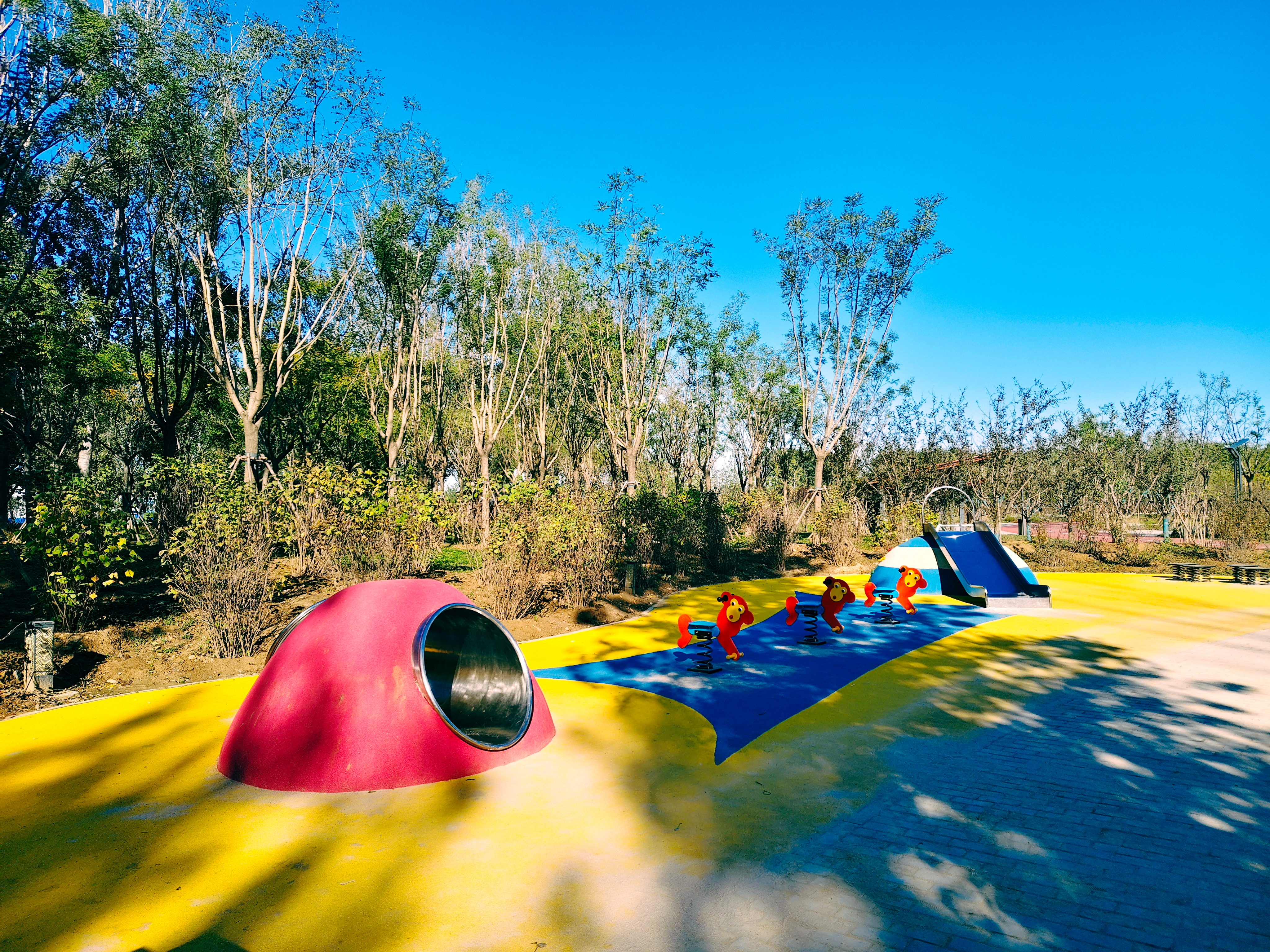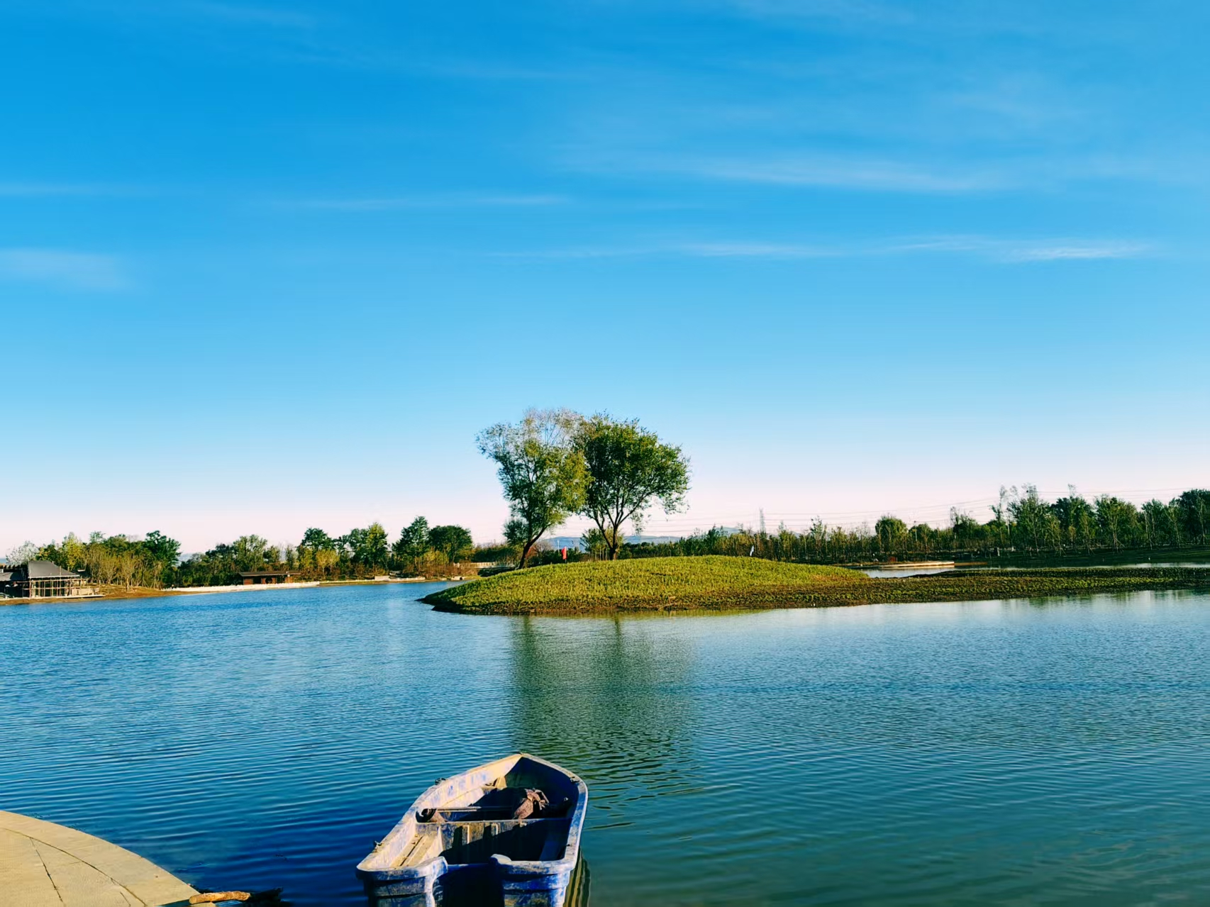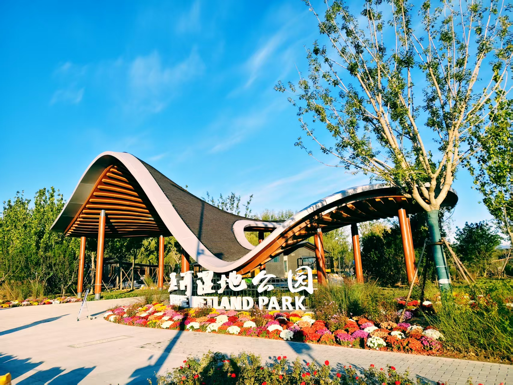 玉河湿地公园落子海淀北部,邻故宫新区,是新晋宝藏地。园内湖泊开阔,可远眺凤凰岭与故宫飞檐;湖心岛波斯菊正艳,新栽银杏、油松添绿意,路边菊丛绽放。跑步道蜿蜒,人少景幽,山环水绕,框景西山尤妙。