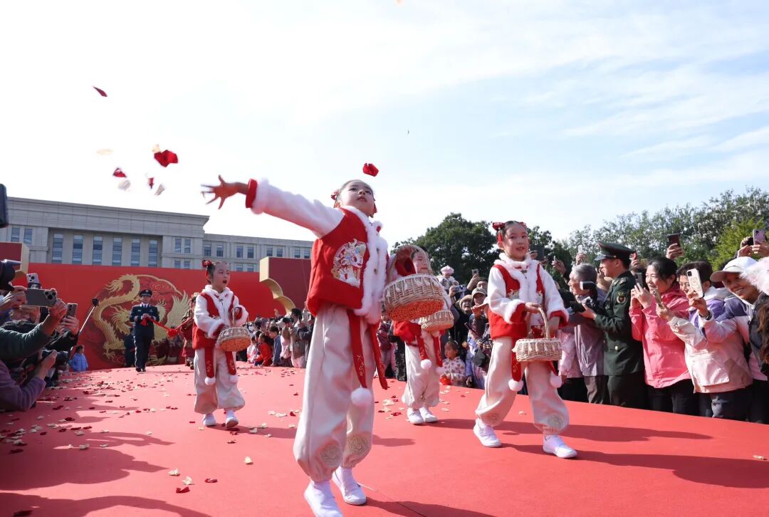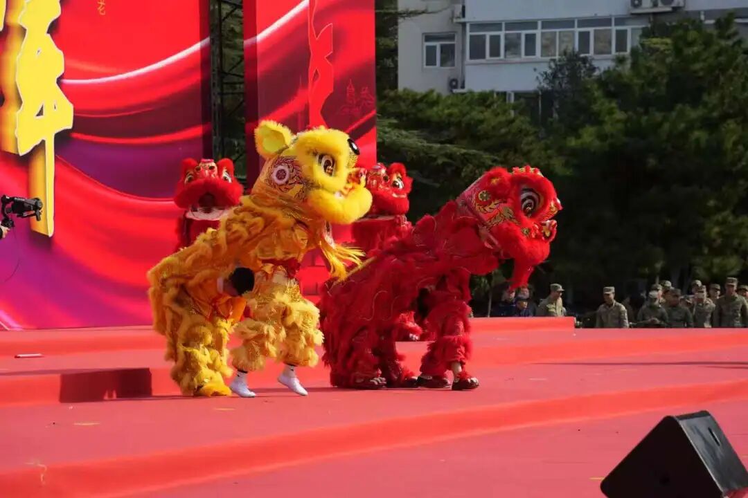 紧接着,极具传统色彩的点睛醒狮环节上演。“一点左眼,前程似锦!二点右眼,姻缘美满!三点天庭,国泰民安!”军地领导为吉狮点睛,随后,“情定海淀·携手强军”军地集体婚礼仪式正式开始。“鸣婚礼礼炮!”刹那间,锣鼓喧天,祥狮献瑞,精彩的吉狮表演将吉祥、欢乐与祝福洒满整个军营,送给每一对新人。