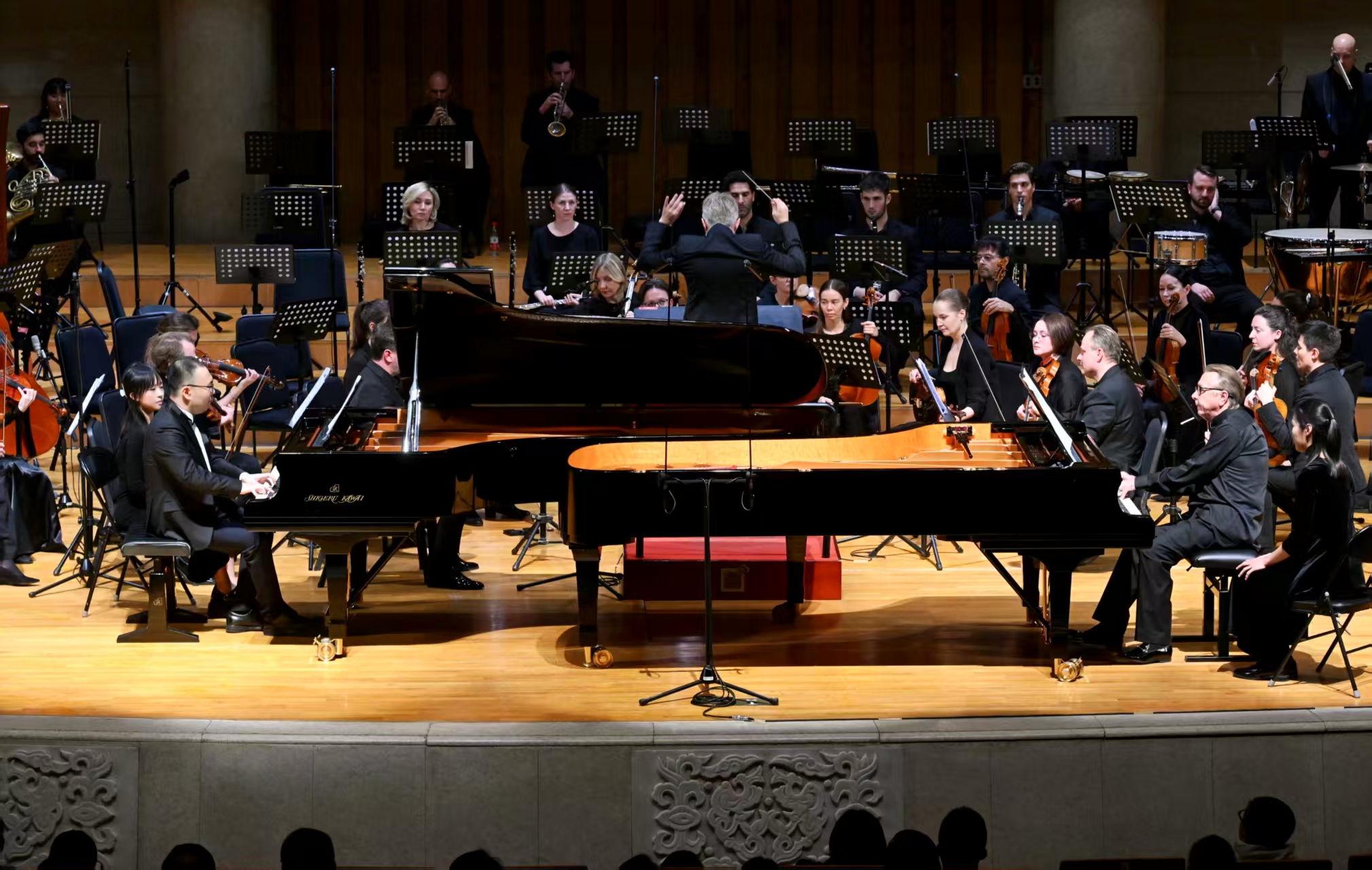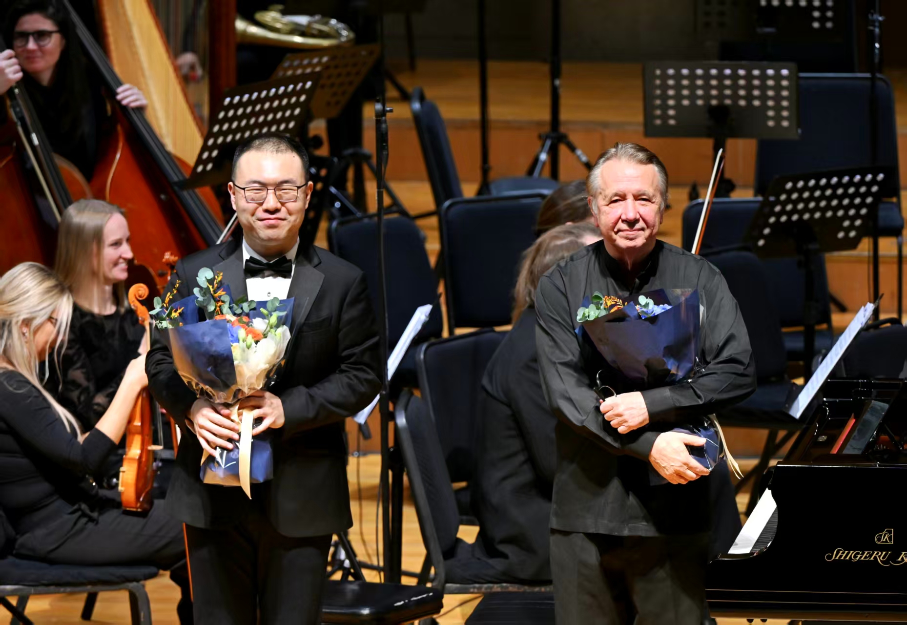随后,双钢琴协奏曲《瑞士幻想曲》展开一幅明丽多彩的音乐画卷。与《音乐记忆14首》呈现的回忆不同,这部写于2006年创作的作品更像普莱特涅夫与未来的对话。普莱特涅夫、安天旭的双钢琴与乐队的互动尤其精彩,钢琴声线在丰富的音响层次中起伏错落,牵引着4个乐章在浪漫的旋律、轻快的爵士感与质朴的民间舞曲之间自由切换。