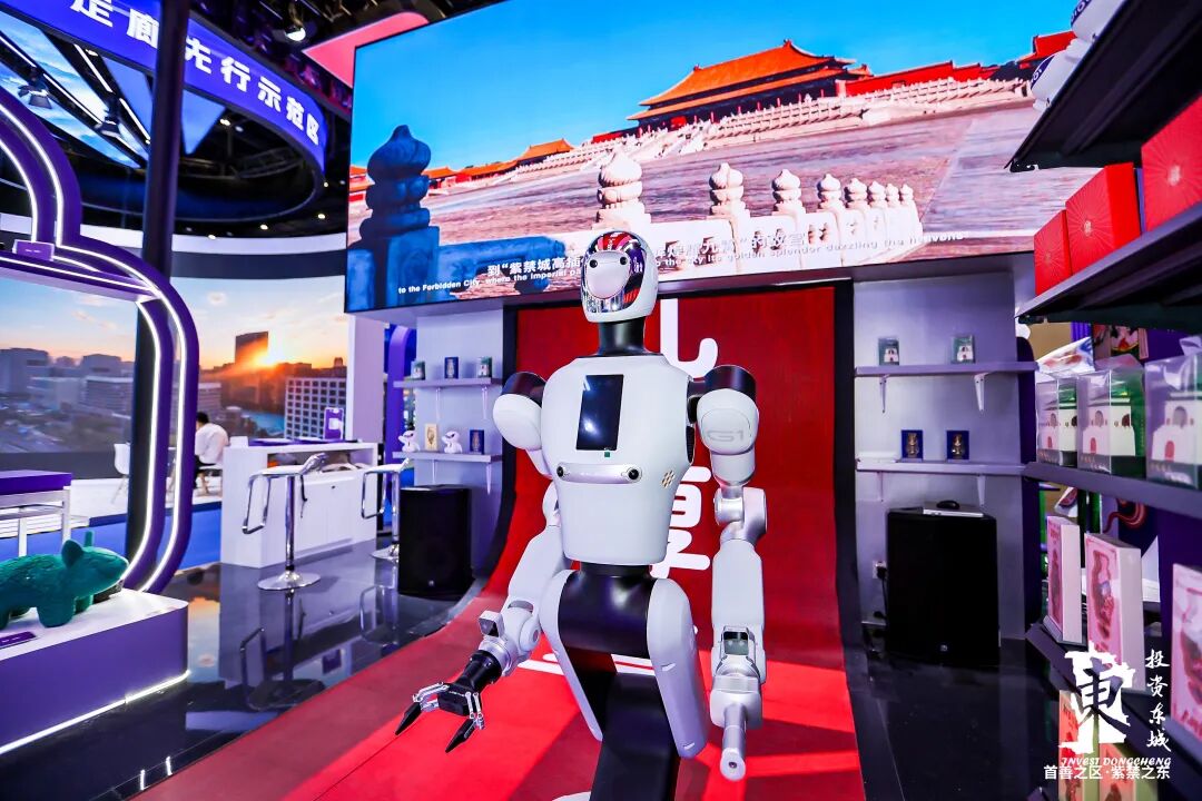 由完美世界带来的“纸鸢漫游”互动装置将东城非遗扎燕风筝制作技艺与中国传统绘画相融合,借助数字技术手段,带领观众沉浸式体验非遗项目的创新表达。使用灵伴科技AR眼镜观看东城地图与非遗展品,观众在领略北京中轴线文化魅力的同时,更加细致地了解景泰蓝、雕漆、金漆镶嵌等非遗作品的内涵。来自银河通用的Galbot智能机器人现场演绎路径规划与精准抓取功能,展现其在商业无人值守场景中的落地应用。