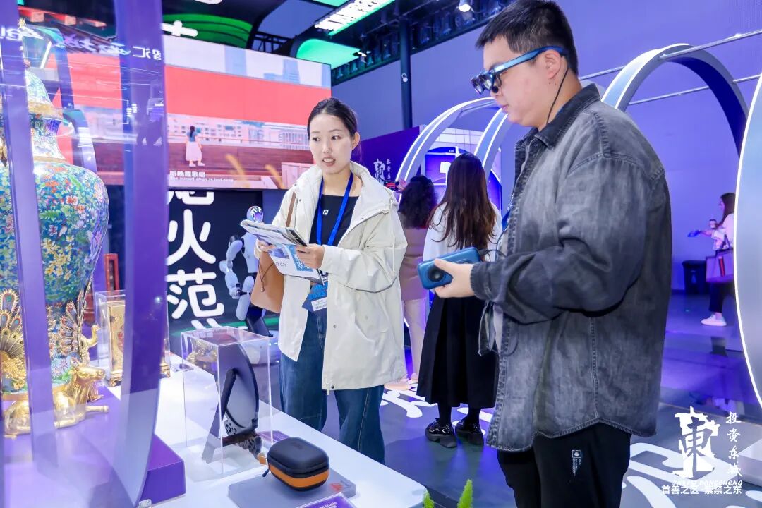 非遗作品展示区由“国之重器”“匠心非遗”与“京味非遗”三部分组成,吸引了众多目光。参观者通过AR眼镜观看展品,可深入了解非遗珍宝背后的故事,感受古都文化、京味文化、创新文化的融合发展。