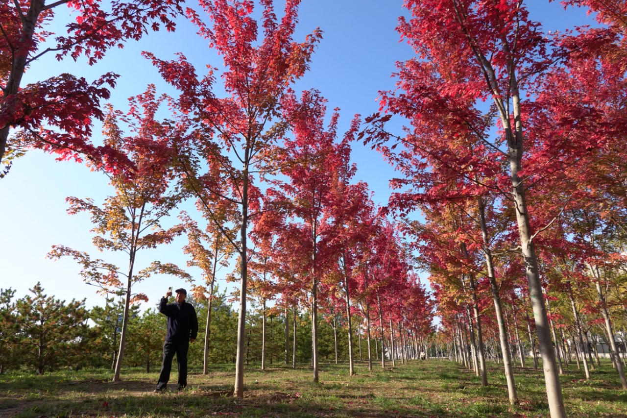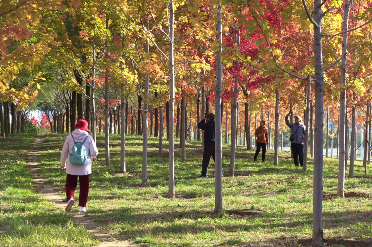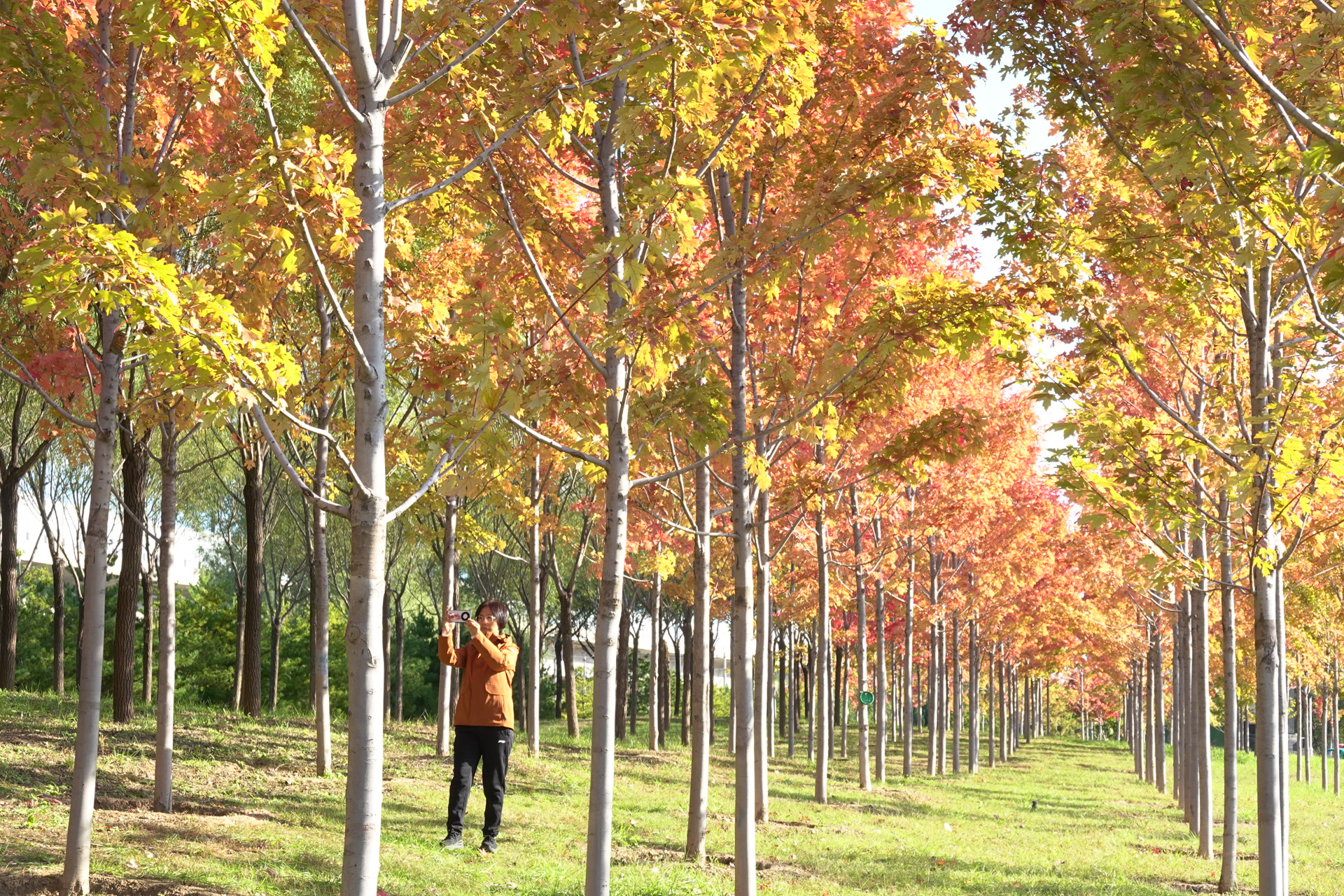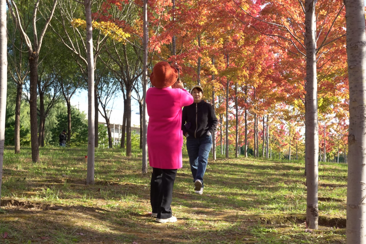 无需远行,家门口的秋景便足以让人沉醉。10月20日,家住在石景山区衙府乐园小区的居民走出小区北门,就看到了路侧的绿化带上由红枫和复叶槭组成了红黄交错的树林,红叶红得如同烈焰,黄叶金黄一片,而绿叶则苍翠欲滴,共同构成了一幅如诗如画的秋日胜景。漫步其中,仿佛置身于一个仙境般的童话世界。