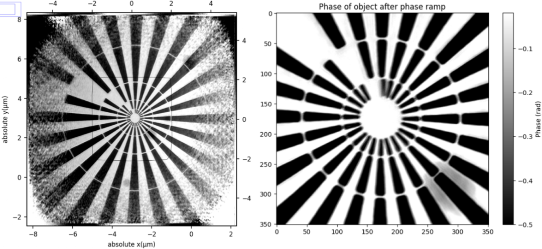 硬X射线相干散射线站:ptychography重建图像最内层条纹宽度30nm,重建像素尺寸6.9nm,分辨率约9.5nm。