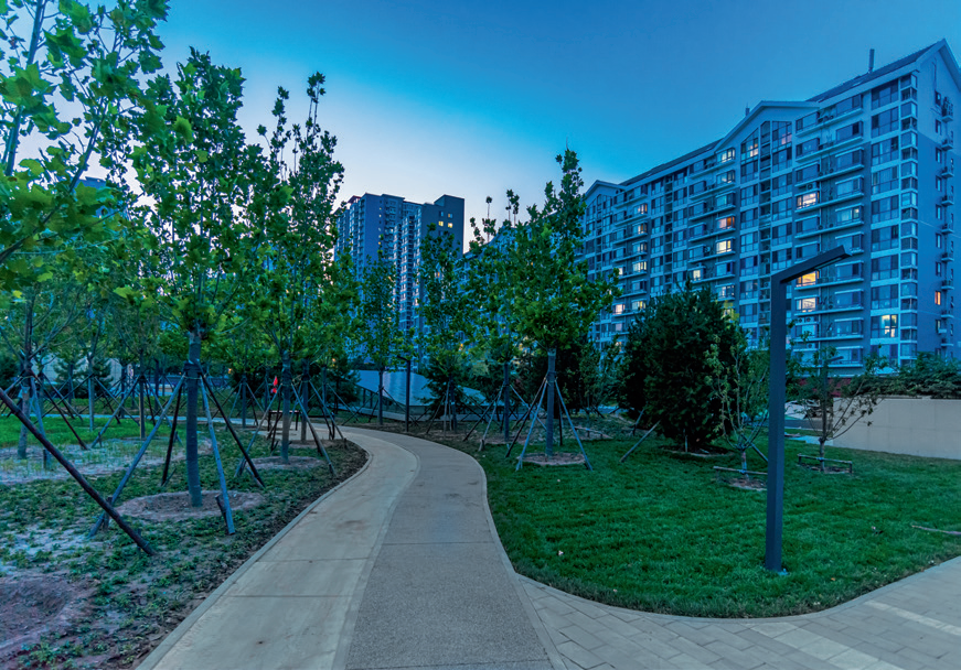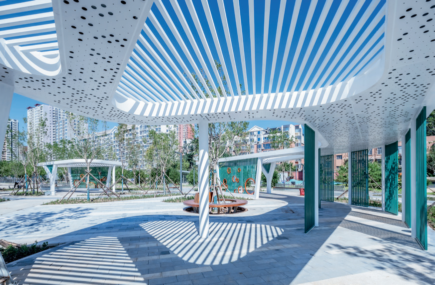 作为石景山区在绿地融合利用领域的探索项目,项目还复合了体育健身、城市绿化、生态修复、停车服务及公共空间等多重功能于一体,成功实现了土地功能的多元化转型,有效补齐了公共服务设施的不足,显著提升了公共服务的综合价值。公园绿地作为城市开放性空间,延续冬奥主题,践行了“全龄友好,融体于园”的设计理念;公共停车场为周边小区的停车缺口提供了便捷且安全的停车服务,进一步增强了公共服务的实用性与便利性。这种具备复合功能的设计,在提升城市形象、改善居民生活品质的同时,达成了“一片土地、双重服务”的目标,推动了社会和谐与经济发展。