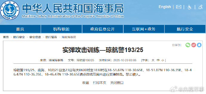 航行警告!南海部分海域实弹射击训练