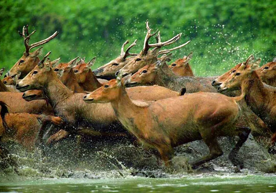 麋鹿回归40载 万鹿奔腾的生态奇迹