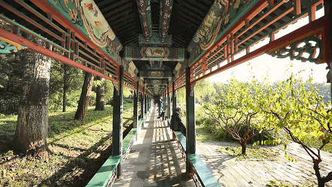 在颐和园的山水亭台间