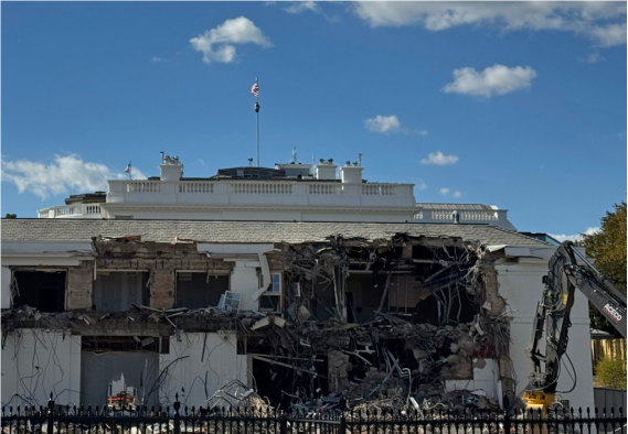 当地时间20日,施工队启动白宫东翼部分建筑的拆除工作。图自美媒