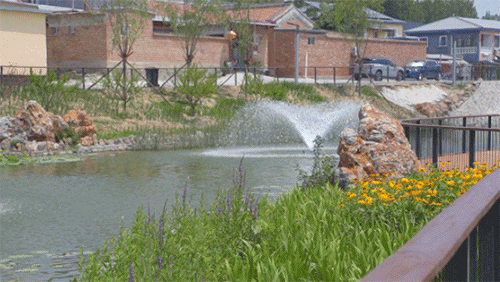 顺义区的黑臭水体治理不拘一格,根据不同村庄的特点,探索出多种方式。在高丽营镇南郎中村,“小微湿地+”模式同样成果显著。曾经的蓄洪坑塘,因污水排入和水动力不足,绿藻滋生、产生异味,还存在安全隐患。南郎中村开展治理工程,先是改造生活污水管线截流,从源头上解决污染问题;再进行水利清淤,对淤泥资源化利用;还安装了9座喷泉曝气机,种植水生植物,构建“曝气充氧+植物净化”体系。