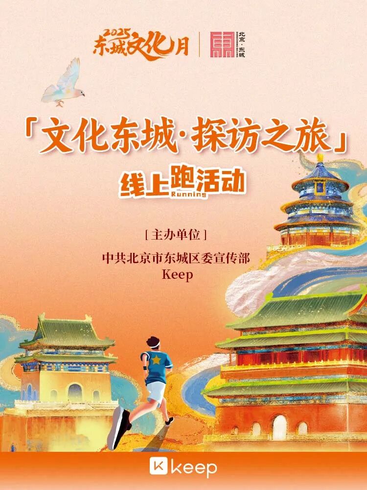 文化月活动联合全国最大线上健身平台Keep推出的“文化东城探访之旅”线上跑活动,形成了“线下参与、线上传播”的良好态势。活动吸引全国45000余名用户参与,其中500名幸运群众将收到2025东城文化月专属奖牌。