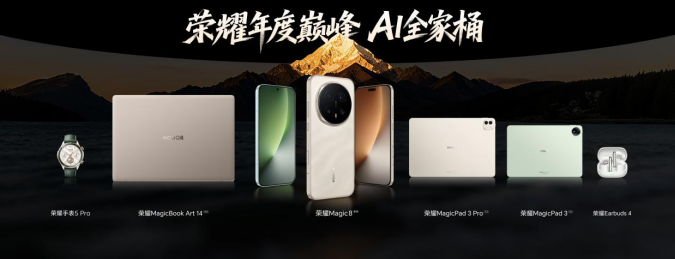 巅峰AI、巅峰夜神、巅峰性能,荣耀Magic8系列不仅是技术参数的进化,更是对下一代AI终端的深刻理解和诠释,开启自进化AI原生手机的新时代。以“自进化AI”为脑、以“AiMAGE影像”为眼、以最强性能硬件为体,荣耀Magic8系列创造了一个懂用户、为用户、与用户共生共创的万能智慧搭子。在AI发展进入深水区的今天,荣耀Magic8系列正以其全面的AI科技,引领旗舰手机的进化方向。