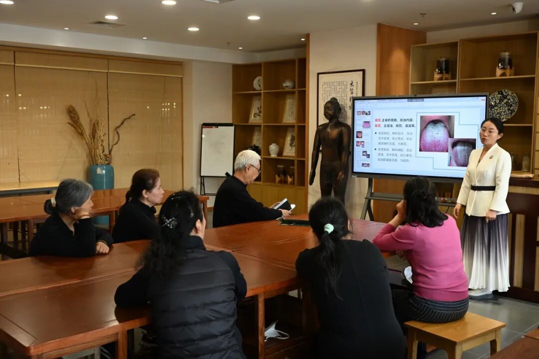 “我们根据舌苔颜色判断健康情况。”四层“粹空间”国医阁中医课程上,中医老师万瑞鑫正在给老人们讲解常见病症和穴位知识。“我们主要针对老年群体和叔叔阿姨的常见病症,向大家分享了药食同源小方法和相关穴位按揉小方法,并且为各位叔叔阿姨具体讲解了如何通过观察舌头划分常见问题,同时还带领叔叔阿姨认识穴位和常用中药材。”万瑞鑫说。