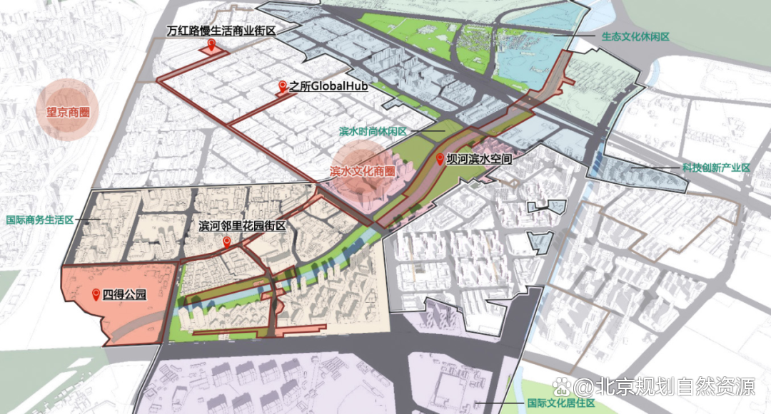 坝河建成4.6公里林荫骑行道、3座跨河人行桥梁及12处亲水平台,让人民群众共享滨水空间更新成果;四得公园带动越来越多的市民亲身体会自然之美;首都机场高速沿线(将台滨河邻里花园街区)综合整治提升项目通过功能混合,补充了科普、阅读、展览等社区服务设施,提升了区域的综合功能与品质,实现了空间资源的集约高效利用。万红路慢生活已吸引超50家各类商户入驻,提供就业岗位超500个;GlobalHub项目服务周边3公里内居住客群与办公人群。极大提升项目服务人群,提供更多就业岗位。