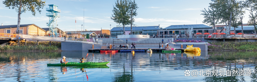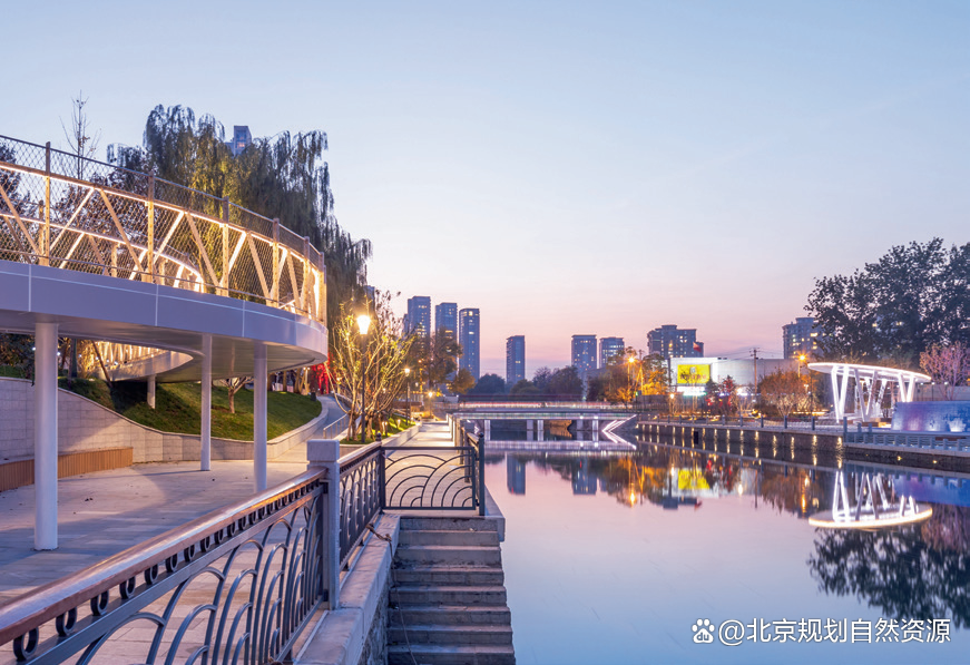 项目注重滨水空间全要素整合,坝河项目突破河道治理单一路径,将滨水空间与周边商业、居住、公园等功能进行统筹布局,打造了集生态旅游、商业消费、居民休闲为一体的生态艺术水岸,实现滨水空间“还河于民、还绿于民”。