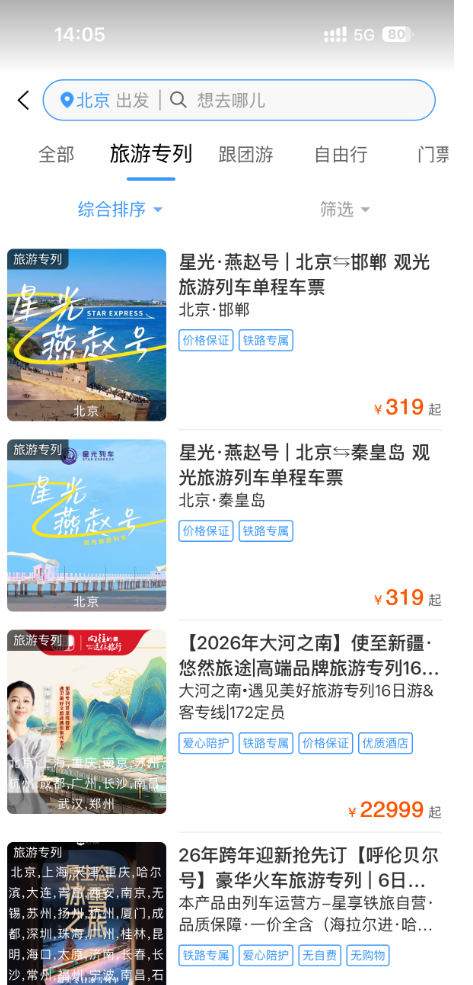 近期,全国各地铁路部门利用客运淡季释放的运力资源,与地方文旅、教育等部门协调联动,组织开行旅游列车、银发列车、研学专列、歌迷专列等特色主题列车,推出各具特色的精品旅行线路,以铁路线串联起沿线美食美景和人文名胜。旅客朋友可通过铁路12306客户端“门票·旅游”板块查询旅游列车开行情况及沿线景点,及时预定席位。