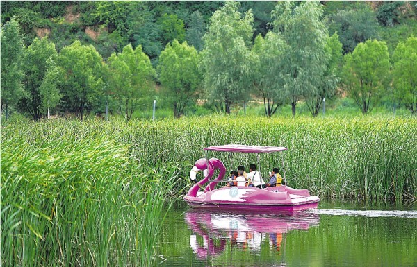 游客在南泥湾国家湿地公园内游玩。图源:新华社