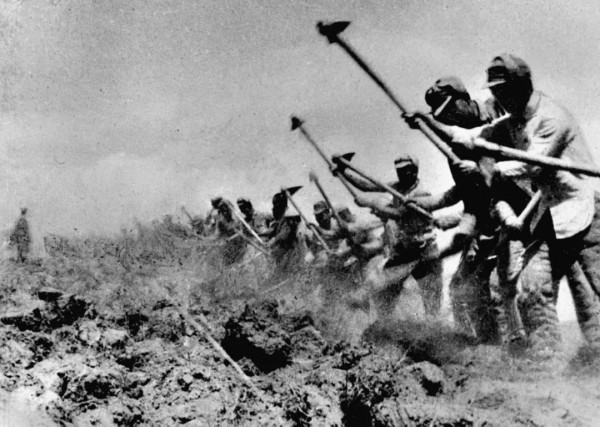 八路军三五九旅在南泥湾开荒生产。图源:新华社(资料照片)