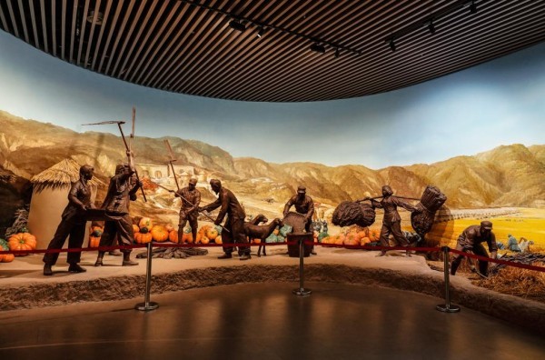 南泥湾大生产纪念馆内的雕塑作品。图源:新华社