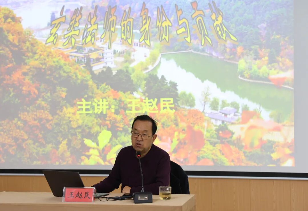 讲座中,王赵民老师深度解读了玄奘法师的多重身份与卓越贡献。作为佛教中国化的关键推动者,玄奘不仅推动佛学中心从印度东移,创立法相宗构建系统哲学体系,更推广发展因明学说,培育神昉、窥基等大批专业人才。他兼具爱国主义者、中外文化交流使者、思想家等多重身份。习近平主席指出:“中国唐代玄奘西行取经,历尽磨难,体现的是中国人学习域外文化的坚韧精神。”成为跨越千年的精神丰碑,为新时代传承优秀传统文化提供了丰厚滋养。